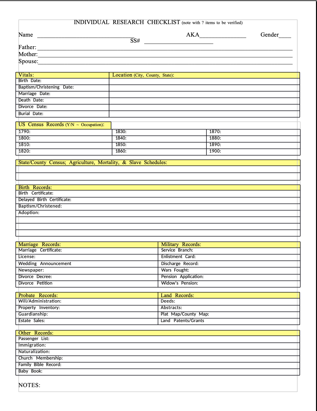 I’ve come to realize I need to start using a research log after doing research & then discovering I already had the information in my files! I love your Individual Research Checklist. Is there a way, and would you give me permission, to download and copy your research list? It would be much appreciated!