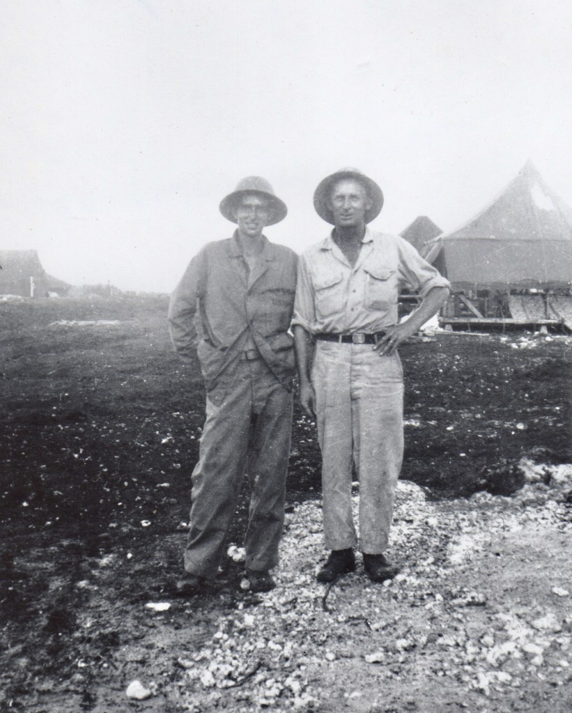 My father also served in WWII but in the Marine Corps and he spent some time on Tinian and was lucky enough to meet up with his dad, Milo. Sadly I do not have his dog tags, but I do have this photo of them together.