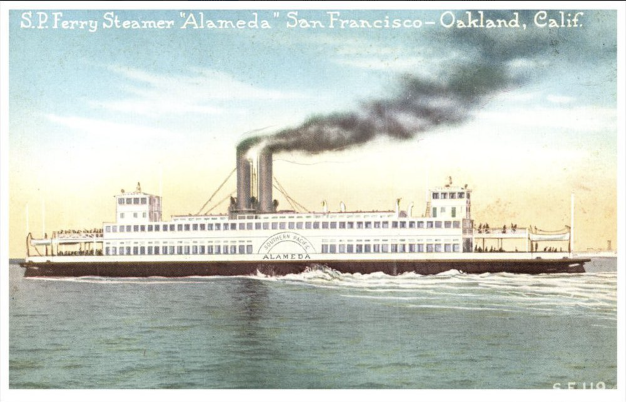 The 4 day rail journey ended in Oakland, California necessitating a ferry trip across the bay. [No Bay Bridge back then.]