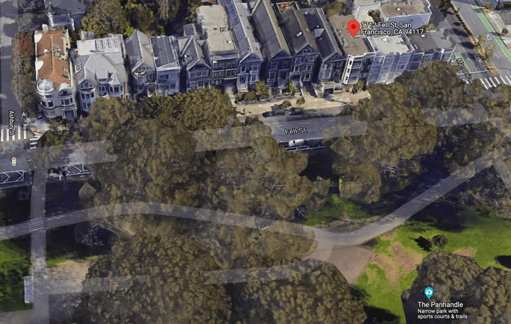 1712 Fell street has been remodeled and made a part of a larger building but what it would have looked like can be seen by its twin which was 1714 Fell street. AS seen below in a 2018 Google Street Photo. Remolded 1712 on right and original twin house on left (1714).
