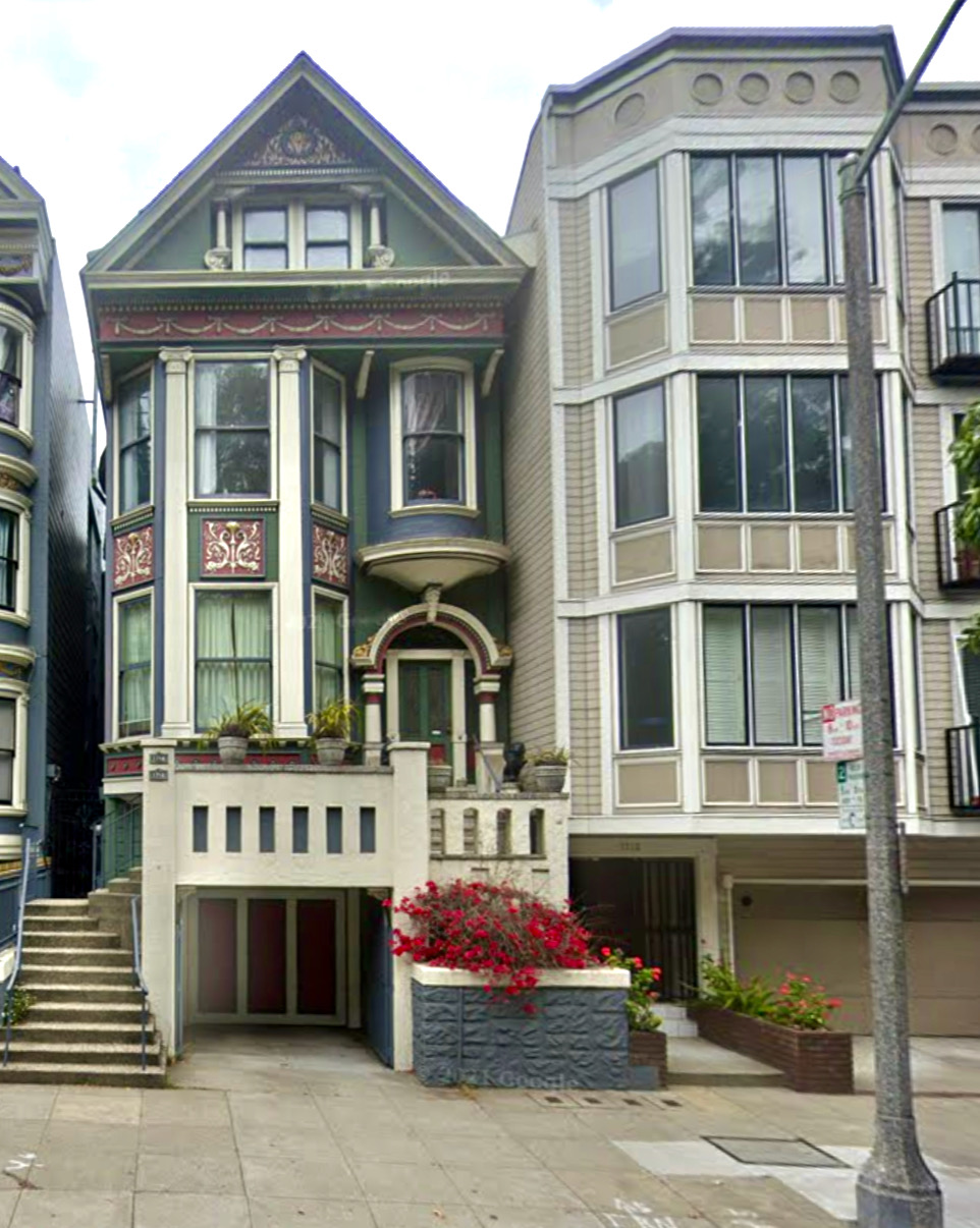 1712 Fell street has been remodeled and made a part of a larger building but what it would have looked like can be seen by its twin which was 1714 Fell street. AS seen below in a 2018 Google Street Photo. Remolded 1712 on right and original twin house on left (1714).