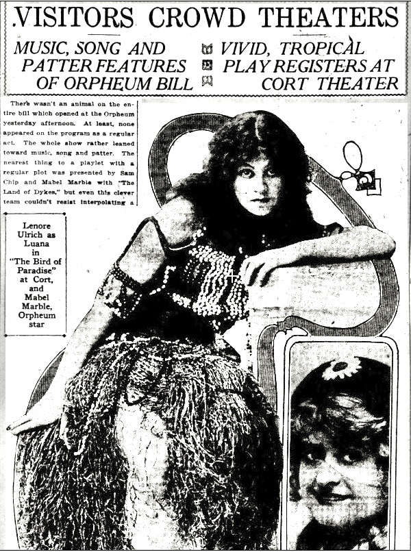 Sat Nov 1 Rained hard all day. Went to the Cort theater to see Bird of Paradise [More on the Cort Theater]