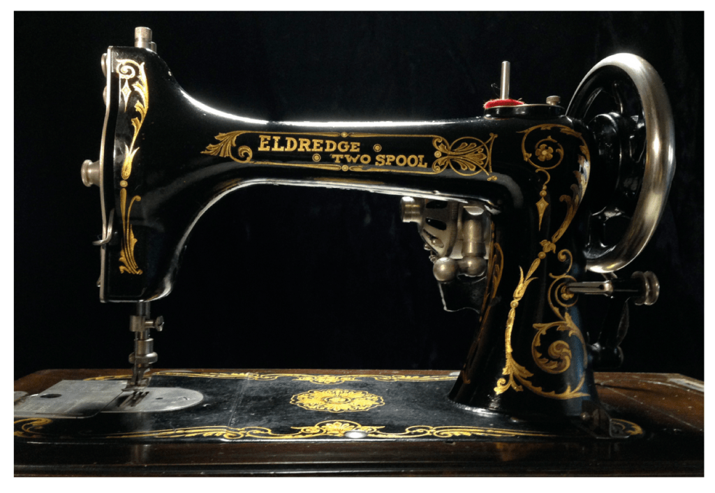 Aug 29 Sat. Severe headache. Finished Mrs Dotens blk. satten recd $2.75. Went down to Filmore and bought some stockings and meat. While I was away Eilenes letter and New Eldredge 2 spool sewing machine came. Went to bed supperless on ac. of headache.
