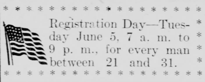 June 5 Registration day So many of my dear boys have to register today. Allie, Leo, Frank, and Sylvester and O but all the others. I hope the was will end before they are called out.