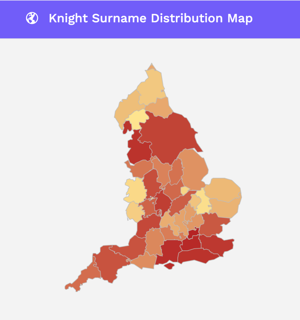 These suggest that there is a fairly high odds that A BISSELL in America from the 1600’s has origins in the midlands with the hotspot in Warwickshire. If we chose a more common name like KNIGHT the results are going to be more ambiguous.