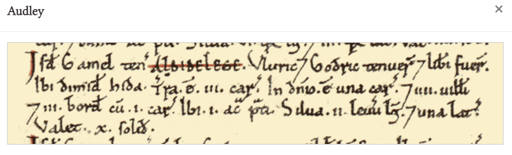 If your surname is a geographical place you might want to find out more about the place in a Gazetteer or at Open DOMESDAY. I searched for the surname AUDLEY turns up a place in Staffordshire. “Audley was a settlement in Domesday Book, in the hundred of Pirehill and the county of Staffordshire. It had a recorded population of 7 households in 1086, putting it in the smallest 40% of settlements recorded in Domesday.”