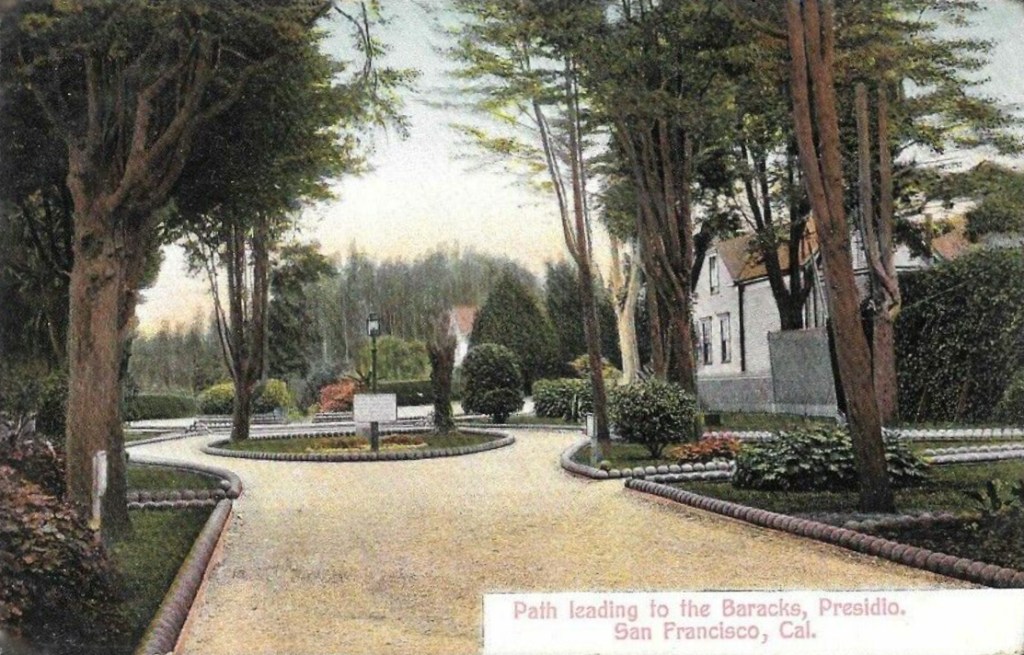 Wed 15 – Jessie & I went to the Presidio to see Milo. It was wonderful to see so many fine young fellows in their uniforms. He took us into his barracks and introduced us to his friends. I do not know the army names for them. They seem to be a splendid set of young men. We went out into the grounds and took several snap shots which Leo ba’e Hoffman spoiled later.