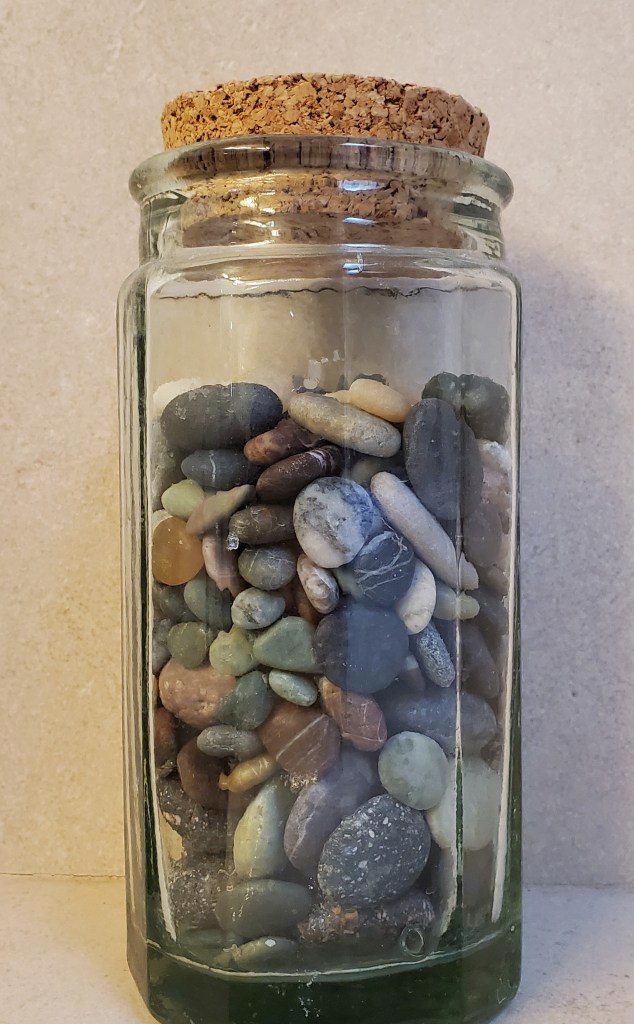 This idea came to me whilst taking a walk on a misty morning. I was thinking about a jar of pebbles I have collected and what will it take to get me to stoop down and pick up a new one? What makes me pick up that pebble and not this one? What makes some bit of writing more appealing, more tangible than another?