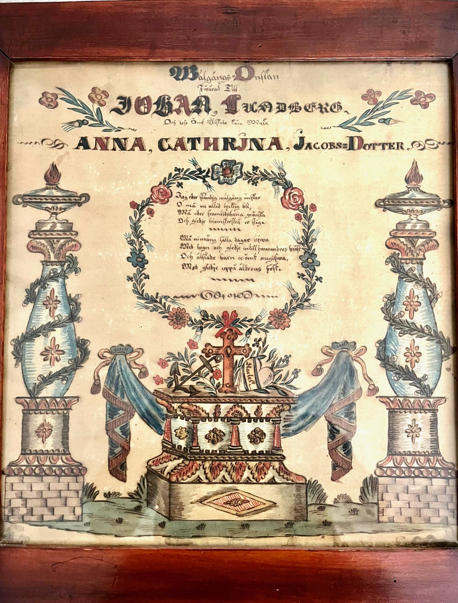 Well just after I started this blog post i got an invitation from a distant cousin in Sweden Casja Lundburg to a new group for our Lundberg family on Facebook. Whereupon another cousin posted this lovely painting that was likely done in remembrance of Johan Soloman Lundberg’s Parents Johan Petter Lundberg and Catharina Jacobsdotter’s marriage. They the great-grandparents of Roy Sidney Lundberg and parents of his grandparents who gave him the bible!
