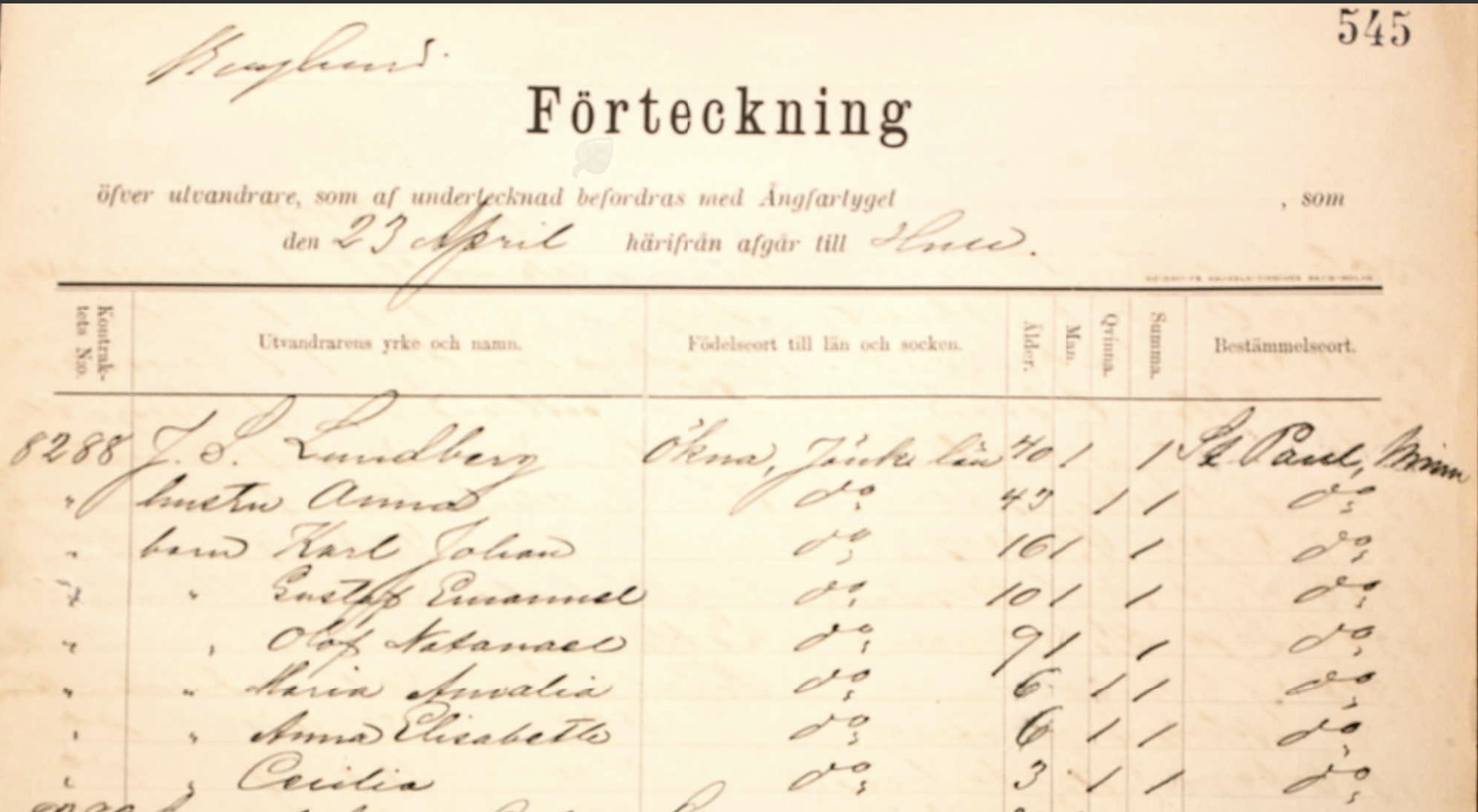 I only have one Bible that previously belonged to a family member [photo above] and it was pictured in my last blog post. That’s what got me thinking about bibles and the treasure that they are. The one I have belonged to my grandfather Roy Sidney Lundberg and as it turns out it was given to him by his paternal grandparents Johan Solomon Lundberg and his wife Anna Olofsdotter who immigrated to America in April of 1880 with their five children. This family is my most recent immigrant family.
