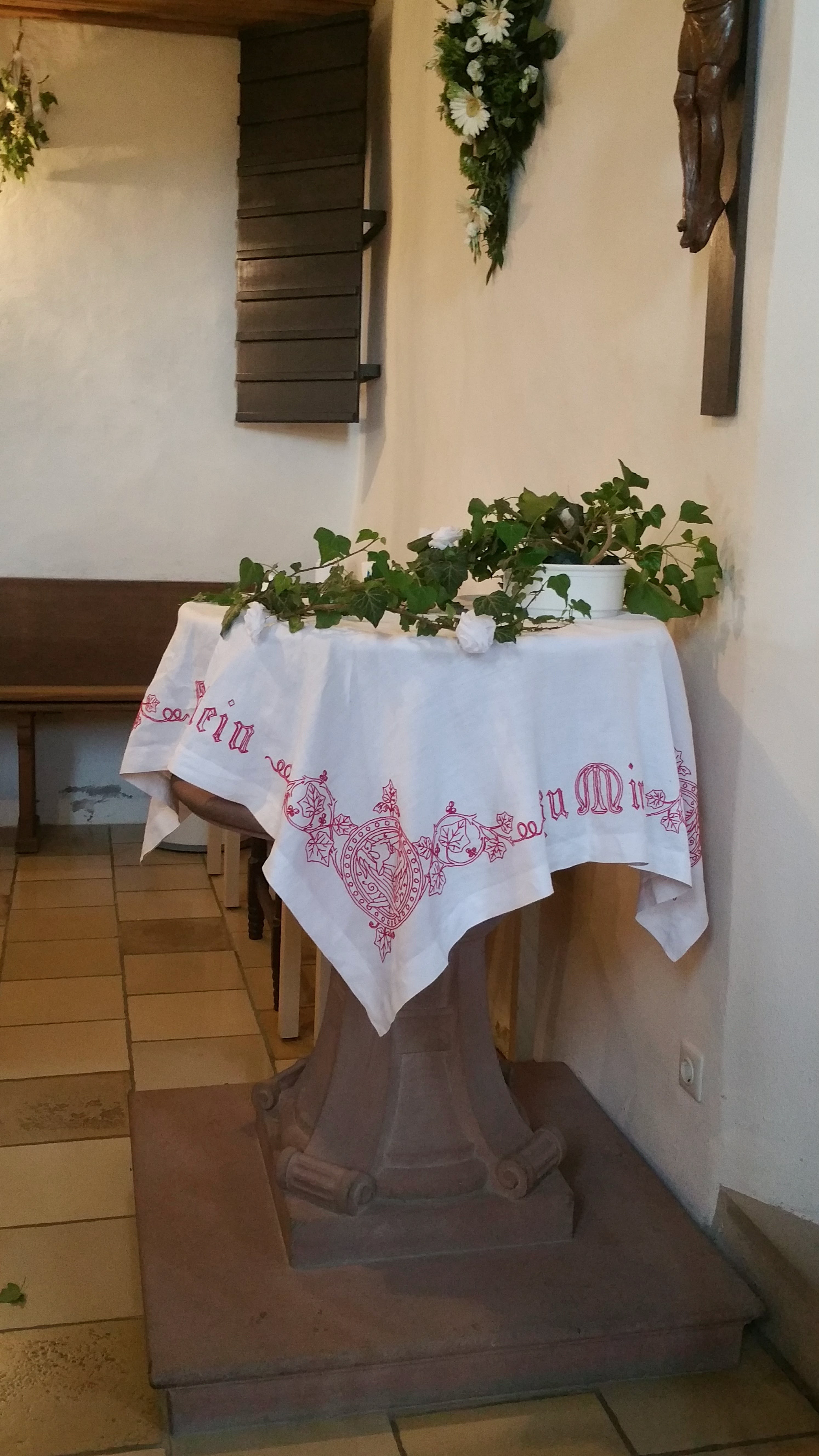 Baptismal font where my 5th GGF Georg “Frederic” MOSER was baptised  03 MAR 1722, Breitenau, Ansbach, Bavaria, Germany
