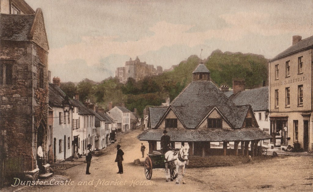If we assume for the sake of conjecture that I am right about my suspicions about Robert WHEATON in Somerset, we need look to the first record in Somerset of a Wheaton/Wheddon etc. which is in the year 1201, when a Walterus of ‘Watesden‘ paid scutage on half a knight’s fee which is held of the honour of Dunster, the lands of William de Mohun. William de Mohun [also spelled Moion or Moyon] was a knight in the service of William the Conqueror who received as many as 68 manors in the west of England including 55 in Somerset. His home estate consisted of the ancient hundreds of Minehead, Cutcombe and Dunster. He built his castle upon an earlier fortified castle in Dunster [shown below] originally called Tore. He was engaged in breeding horses at Cutcombe and Nunney [near Frome]. [Planche, James Robinson The Conqueror and his companions London 1874]
