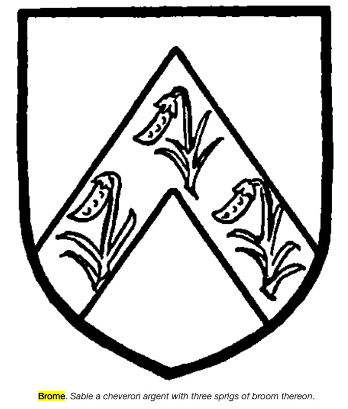 As you can see above the BROME family Coat of Arms had 3 sprigs of Broom and the seal of Nicholas was a sprig of broom below.