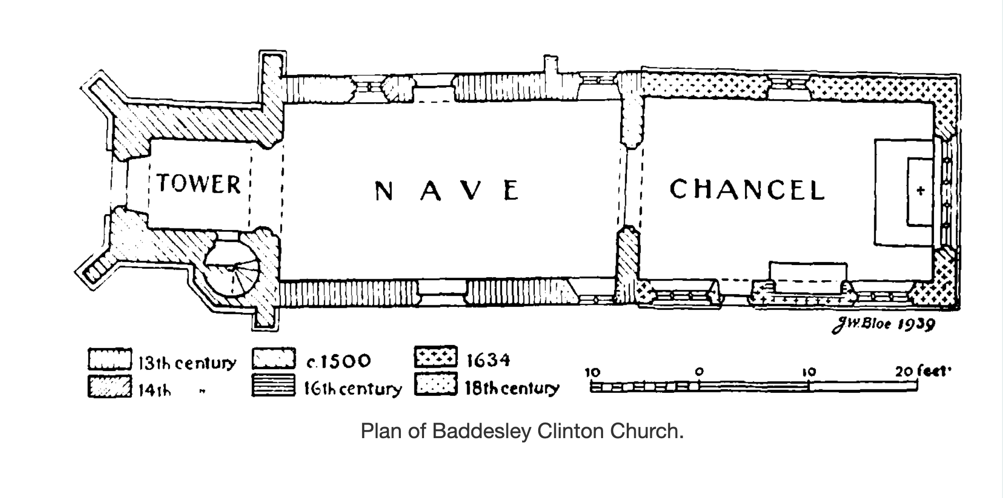 So widow Elizabeth and Nicholas are wed 10th of February 1474 likely at St Michael’s Baddesley. This map of the church shows only the Nave was extant at that time.