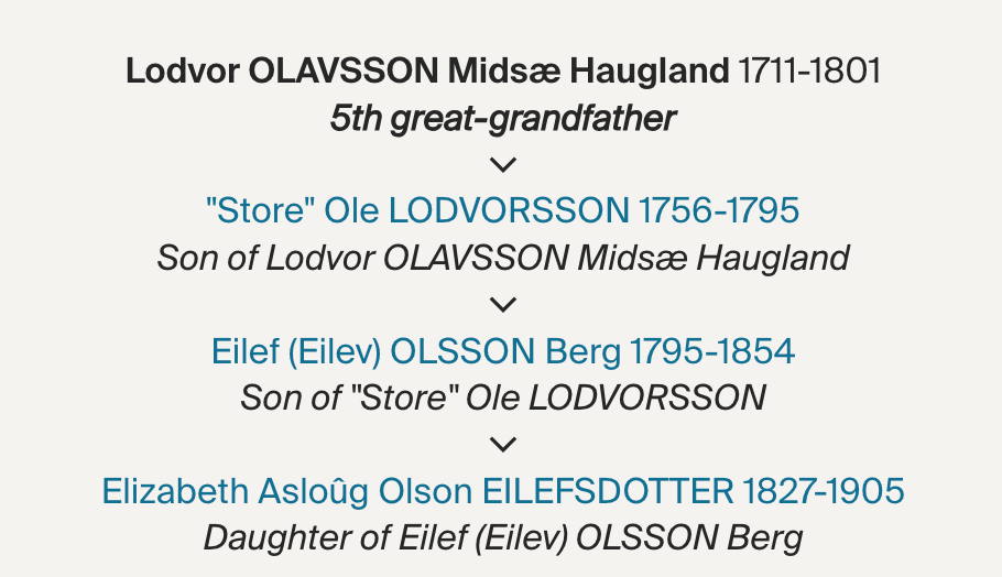 My husband pointed out I was lucky that Lodvor Olavsson was a colorful character as if he had been an upstanding citizen, nothing would have been written about him. If he had not lost everything perhaps Asloûg would have stayed in Norway and I would never have been born! So thank you bestefar [grandpa] Lodvor!