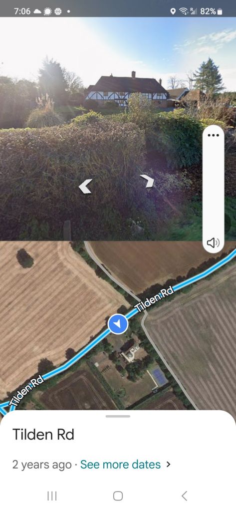 The other possible opportunities were to happen upon leaving Leed’s Castle on our way south to Tenterden. I had asked our tour guide, Ben SIMS and driver, Tony GILBERT, if it might be possible to exit Leeds Castle via Chegworth Road that led to Ulcombe Road, then turns into Tilden Road, rather than taking the B2163. The advantage of going with a tour company like Blue Roads /Back Roads Touring is that it is at their discretion to accommodate such requests. They checked it out via Google Maps and agreed. I had shown them a couple of screen shots of what I was looking for as well as my blog post about the TILDENs.