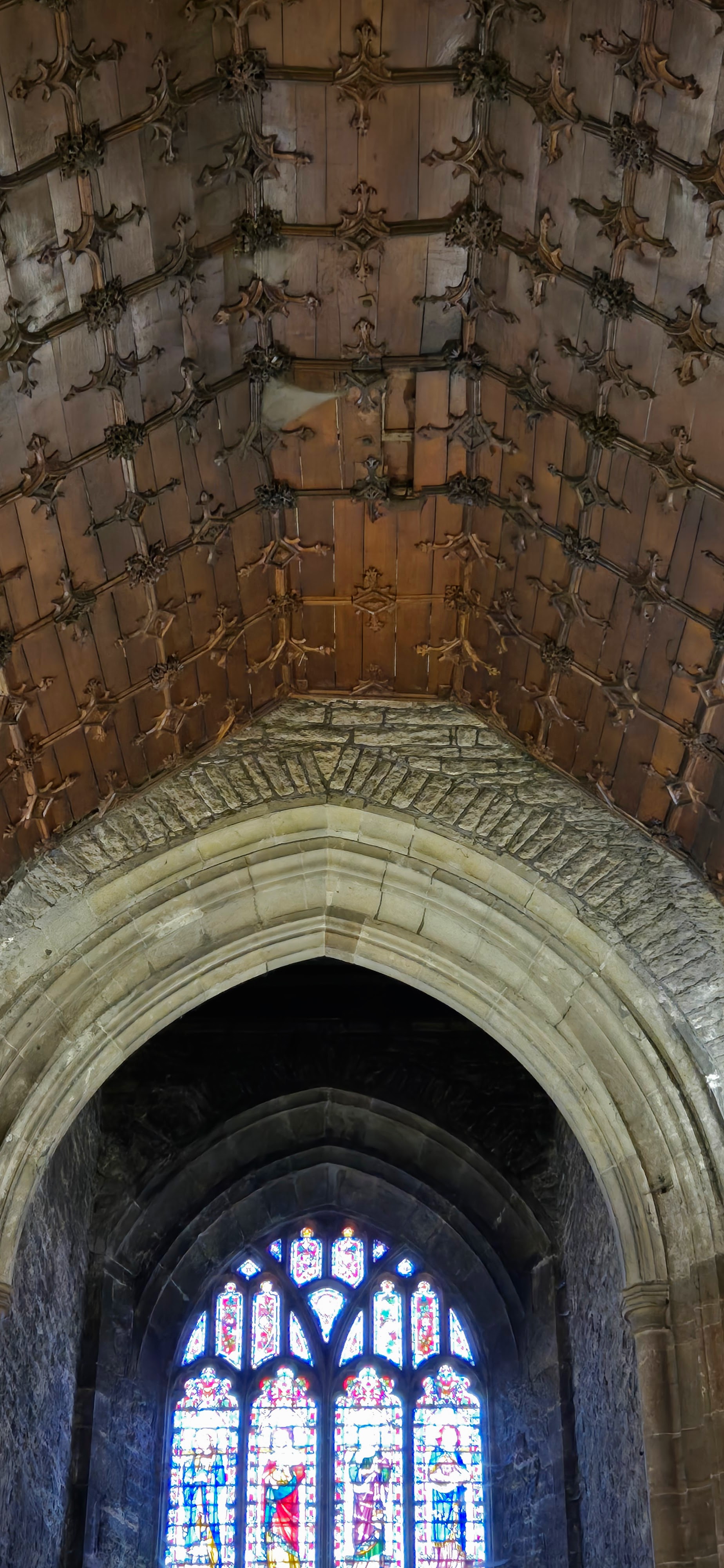 Looking at the outside doors of the tower, into the Nave and up at the barrel vaulted ceiling. I looked for the baptismal font but could not find it ( the workman did not know where it was either although I looked under canvases and tarps.) However, as I gazed up at the ceiling I thought of my ancestors Stephen TILDEN baptized here in 1629, my 9th great grandfather back to his grandfather Thomas born in 1551 and married here in 1576 to Alice BIGGE. The ceiling reminded me of a ships hull or the woodworking on an ornate chest and I speculated that some of the ship builders who were active just south of Tenterden at the hamlet of Small Hythe had been responsible for its construction. Small Hythe stood on a branch of the Rother estuary and was a busy shipbuilding port in the 15th century. The Rother estuary led out to Rye Harbor. Small Hythe silted up and ceased as a shipbuilding place.