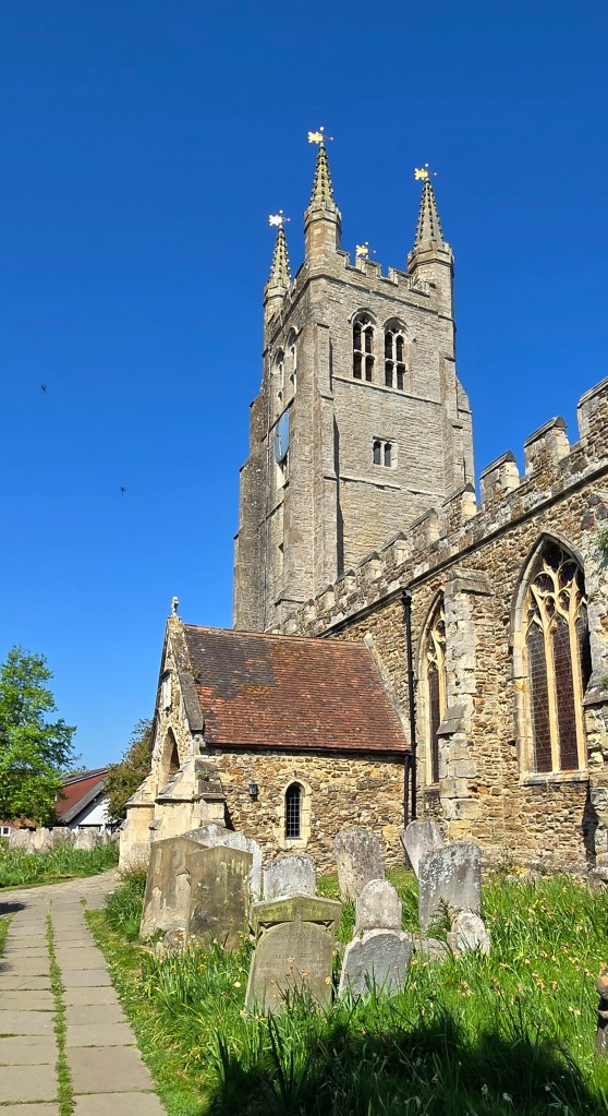 The 15th century tower was built from funds from the wealthy citizens (wool merchants?) of Tenterden and is constructed of local Bethersden marble. It stands at 200 feet above sea level and is itself 125 feet high. The coast of France can be seen from the top of the tower on a clear day. The tower is visible to ships in the Channel and previously had a beacon at its top. Local tradition has it that it was lit during the arrival of the Spanish Armada and perhaps to guide ships to Tenterden when it was one of the “limbs” (additions) of the original Cinque Ports. The Cinque Ports, prounouced “sink” were a confederation of originally five ports, during the reign of Edward the Confessor (1042–1066). These ports were granted the local profits and certain autonomous privileges in exchange for providing ships and protection. They are mentioned in the Magna Carta of 1297. [More on the Magna Carta when I post about my visit to Temple Church in London.]