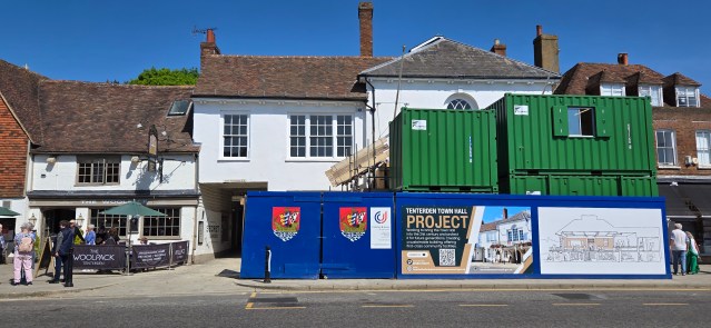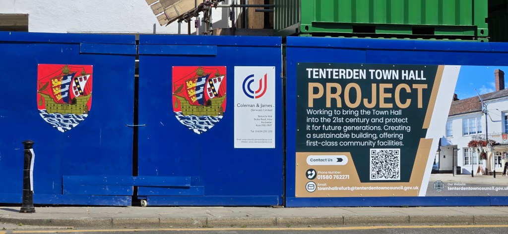 Then a quick dash down the lane to the Tenterden Town Hall where I hoped to pop in for a look at the plaque listing the mayors of Tenterden which included my immigrant , Stephen TILDEN. But in what I considered an absurd sense of humor of the gods this is what I found. The Town Hall was also undergoing renovation ” We make Plans, god laughs”. [It took me 3rd trips to London to see the Elizabeth Tower where it was not shrouded in scaffolding and cloth. Known to most as Big Ben—The bell inside the tower, known as the Great Bell, is the one that is actually named “Big Ben”.]