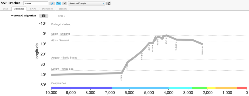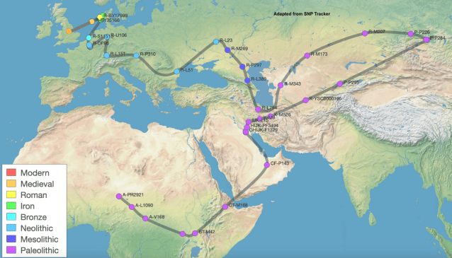 To place this in a historical context you can use the wonderful SNP Tracker to generate a map like this.