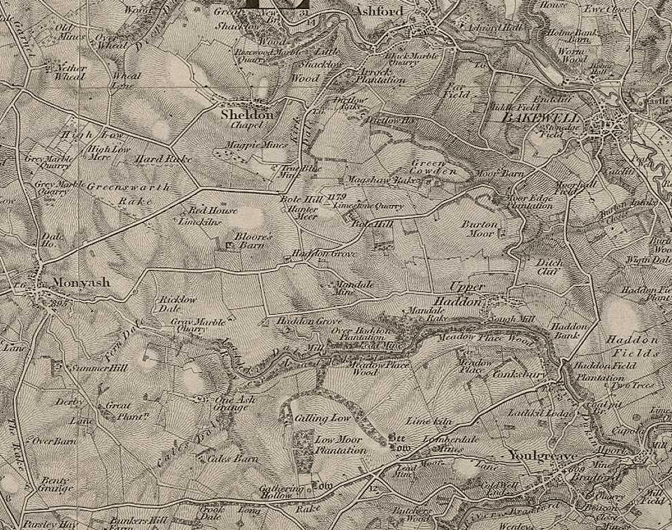 “The hamlet or township of Sheldon was, from a very early period, a parcel of the Manor of Ashford. Griffin, son of Wenonwyn, alienated it in the reign of Henry III to Geoffrey de Pickeford”: it was afterwards re-united to Ashford. The minister of the chapel is appointed by the vicar of Bakewell, to which church it is a chapel of ease.“