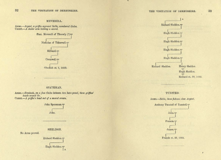 The most thorough treatment of the Derbyshire SHELDONs is to be found in J. Gardner Bartlett, “The Sheldons of Bakewell, Derbyshire, England, and Isaac Sheldon of New England.” The New England Historical and Genealogical Register 80:378, October 1926. Caution should be taken with the information on Isaac 10 SHELDON on pg 397 Where it says ” Isaac…was born probably born at Ashford, in the parish of Bakewell….” which has him as the son of Ralph is incorrect. We know from DNA testing that Isaac matches the descendants of John (13) SHELDON and not the SHELDONs of Derbyshire.