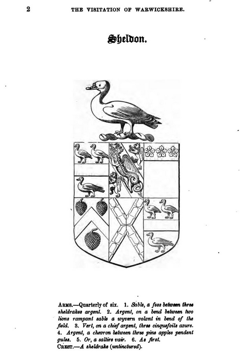 The above description is also include with a drawing in the Visitation of Warwickshire. If the arms date back to this Raffe (Ralph) SHELDON (1375-1464) this would be the earliest we know of the arms.