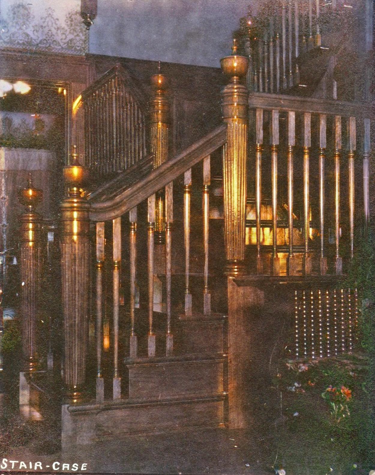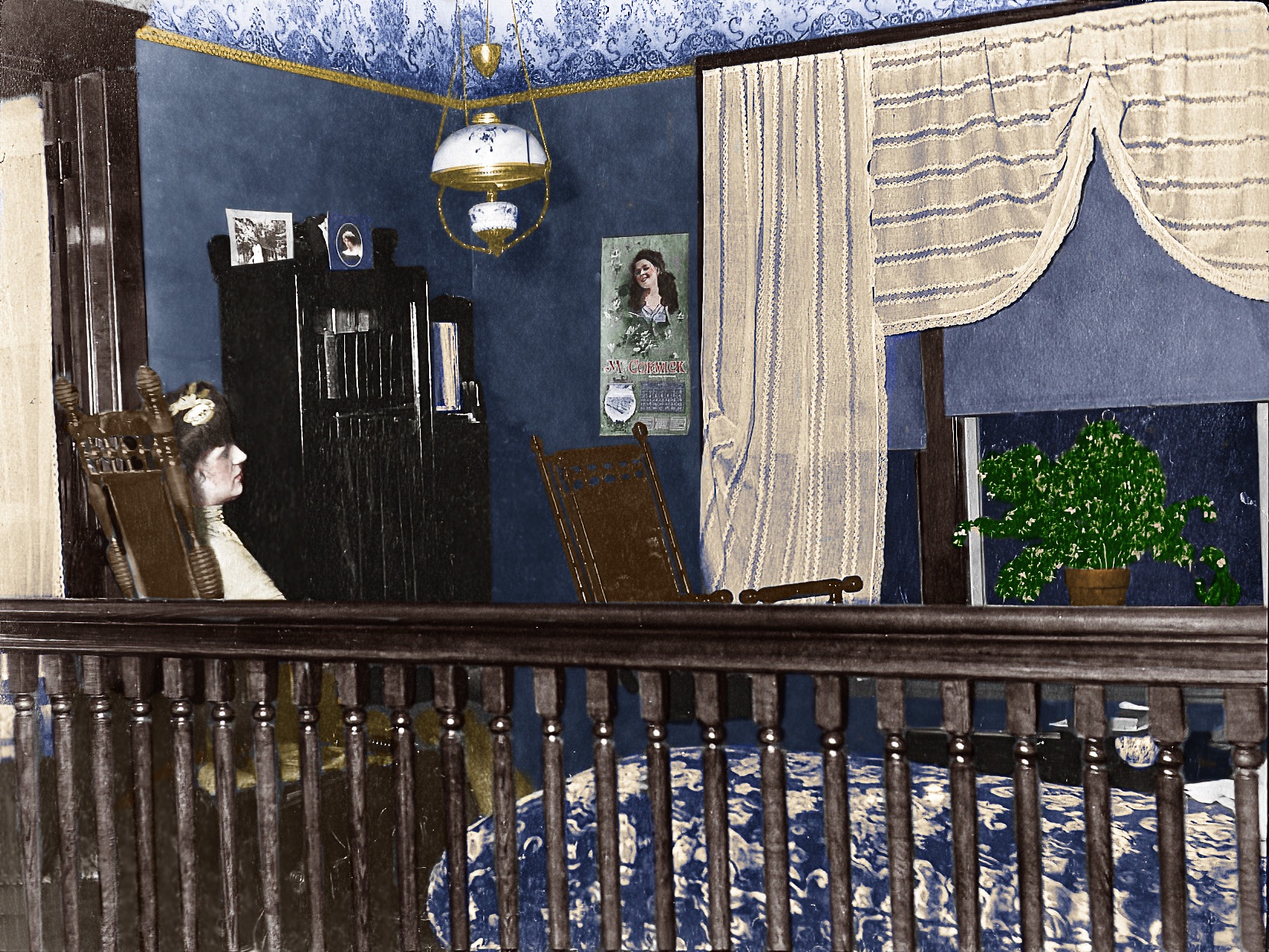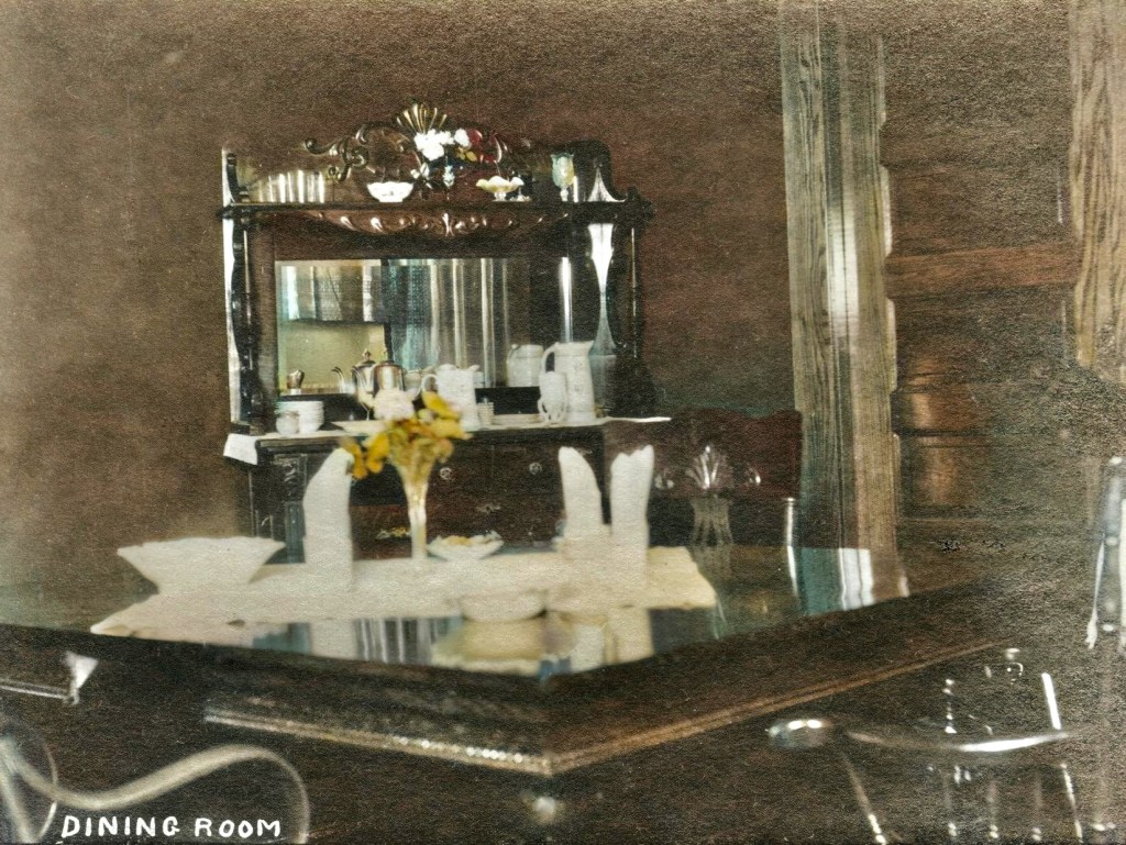 Part of the reason for this blog post is to share photos that I have of the exterior and interior of the house. These have been graciously colorized. Let’s start with the exterior. Click to expand each photo. We can date the photos as about 1903 based on the sheet music in the Music Room.