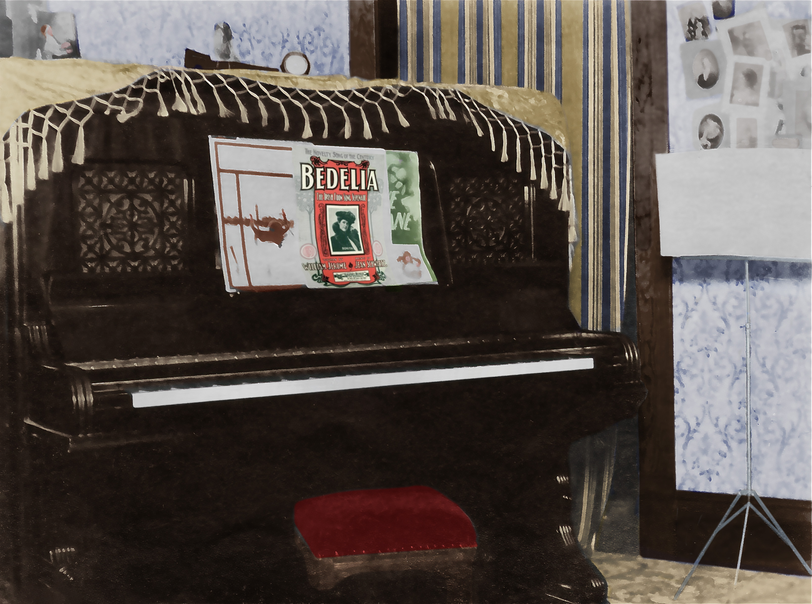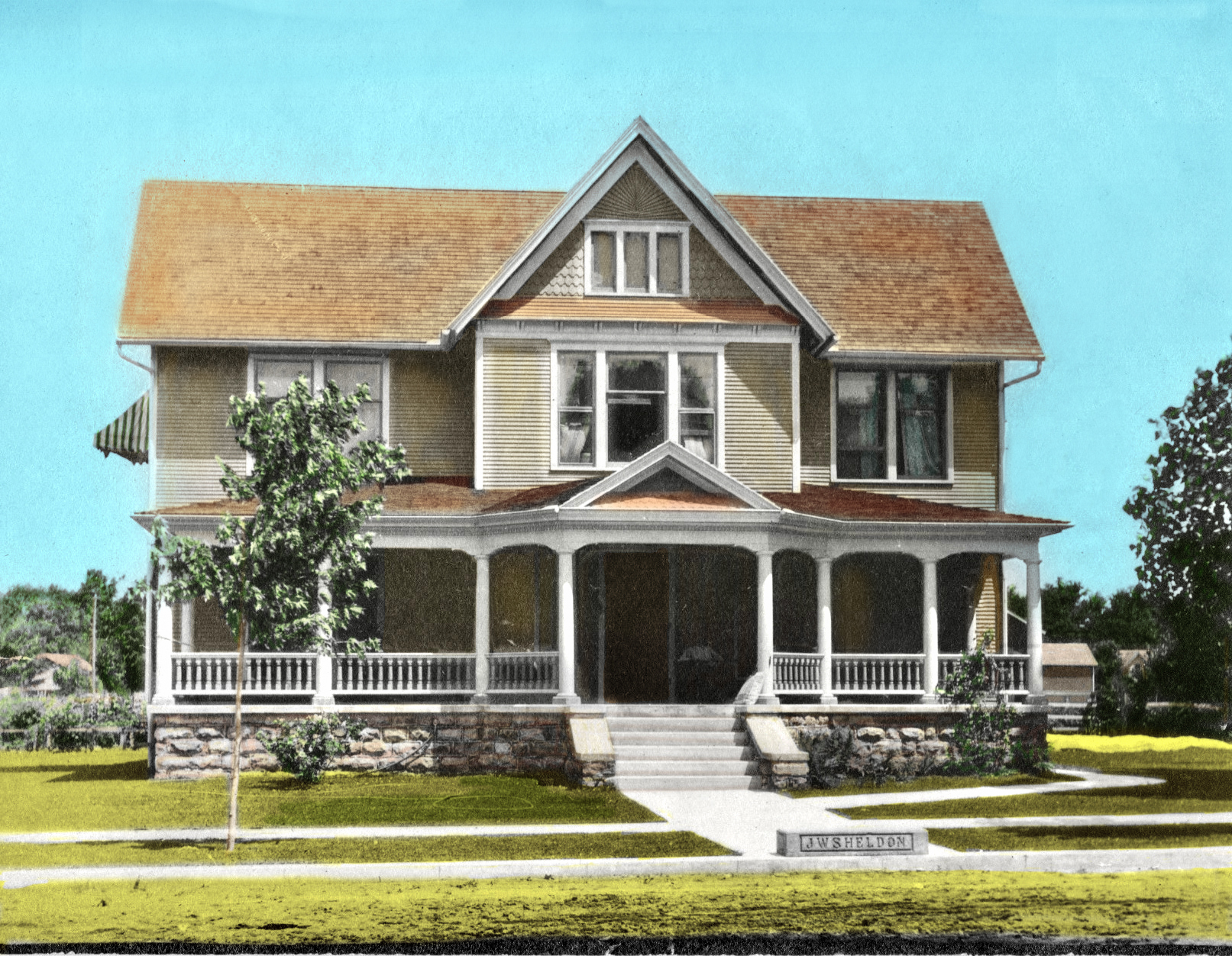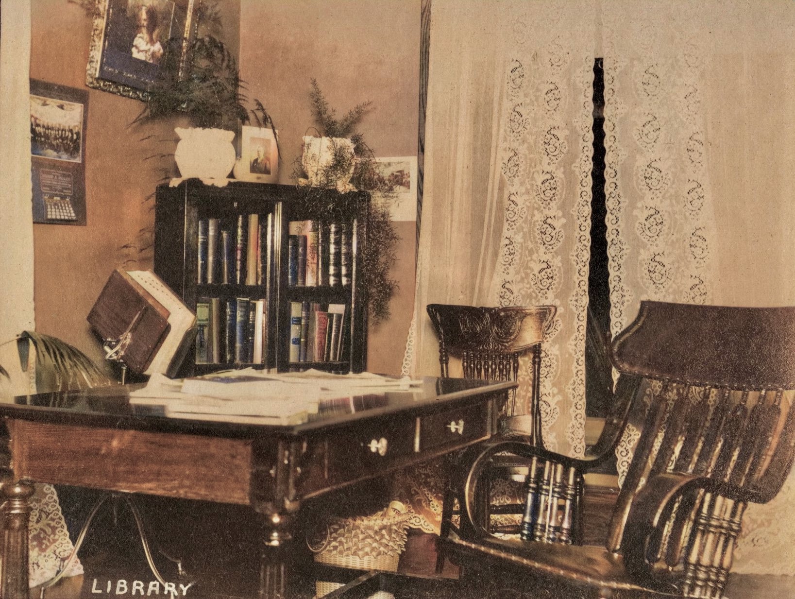 Part of the reason for this blog post is to share photos that I have of the exterior and interior of the house. These have been graciously colorized. Let’s start with the exterior. Click to expand each photo. We can date the photos as about 1903 based on the sheet music in the Music Room.