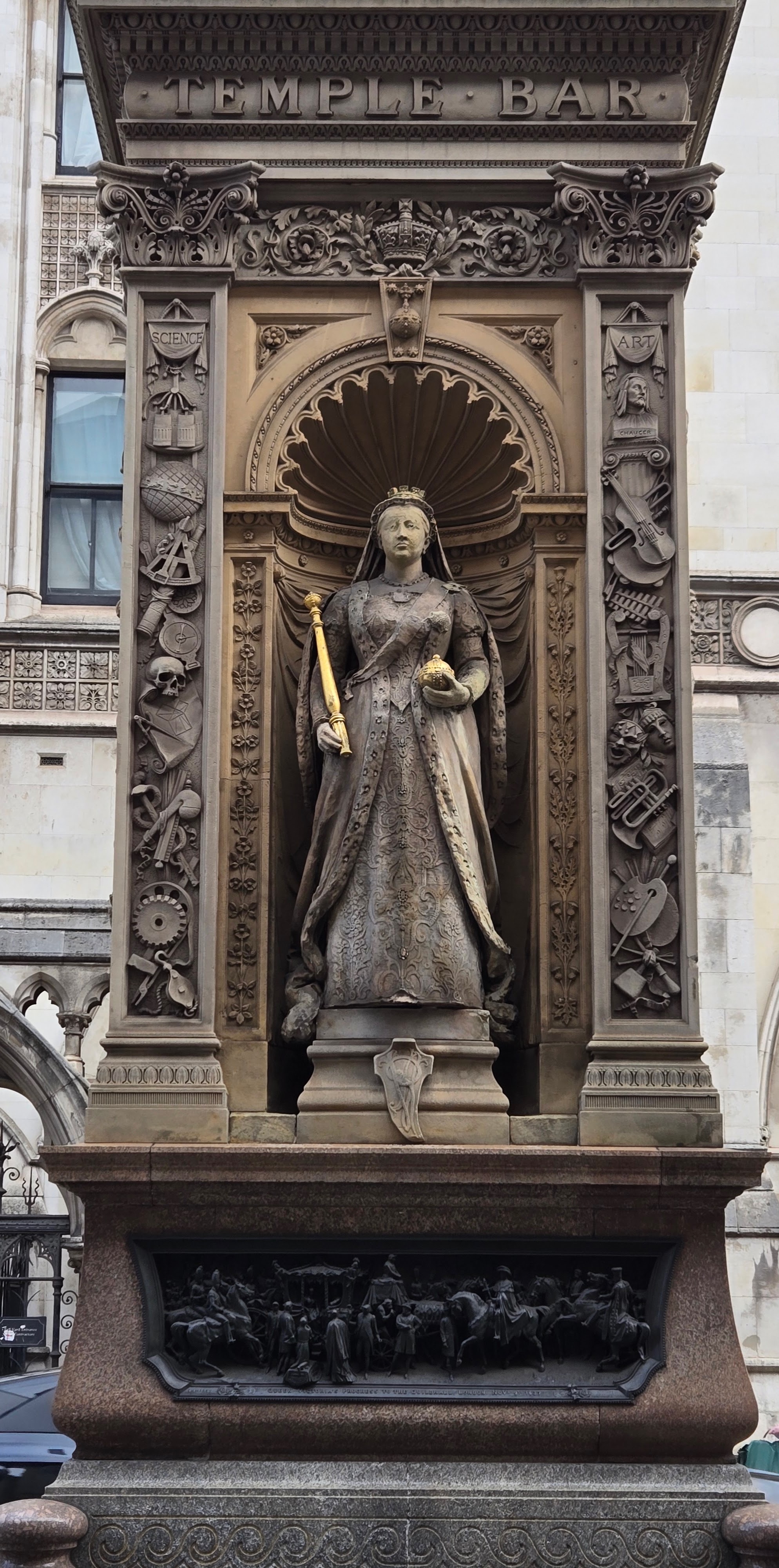 As I was at the Temple church more than a hour before it opened, I made my way up from the Thames to the Royal Courts of Justice on the Strand. This building dates to the 1870s and were opened by Queen Victoria in 1882. A statue honors her nearby. The Royal Courts of Justice, commonly called the Law Courts, house the High Court and Court of Appeal for England and Wales.