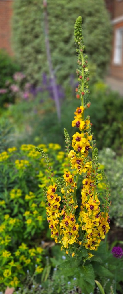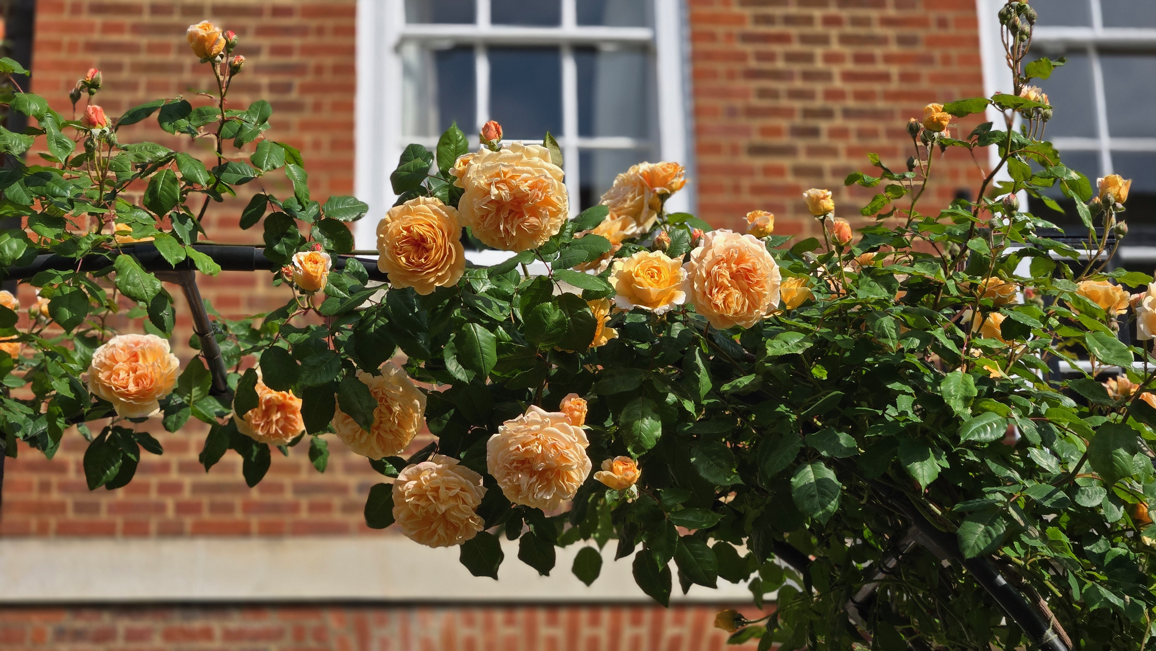 Since Gardening is a passion I want you to read about this garden designer Master Kate Jenrick the Middle Temple’s Master Gardener. “For planting inspiration, Kate looks to the dynamic duo of Christopher Lloyd and Beth Chatto,” both favorites of mine. But let me tell you what I noticed in this garden. There is an incredible attention to detail and the planting of color echoes. Color echoes are plants that share some of the same colors. Look at the photos above do you see how the color of the benches is echoed in the climbing rose and in the brick below. Look closely at the photos below and you will see colors repeated. I think this might be the David Austin Rose “Crown Princess Margareta.”