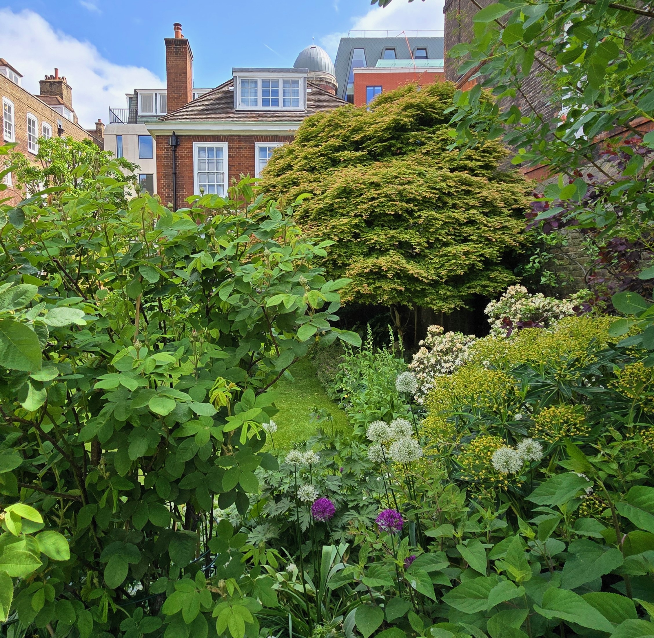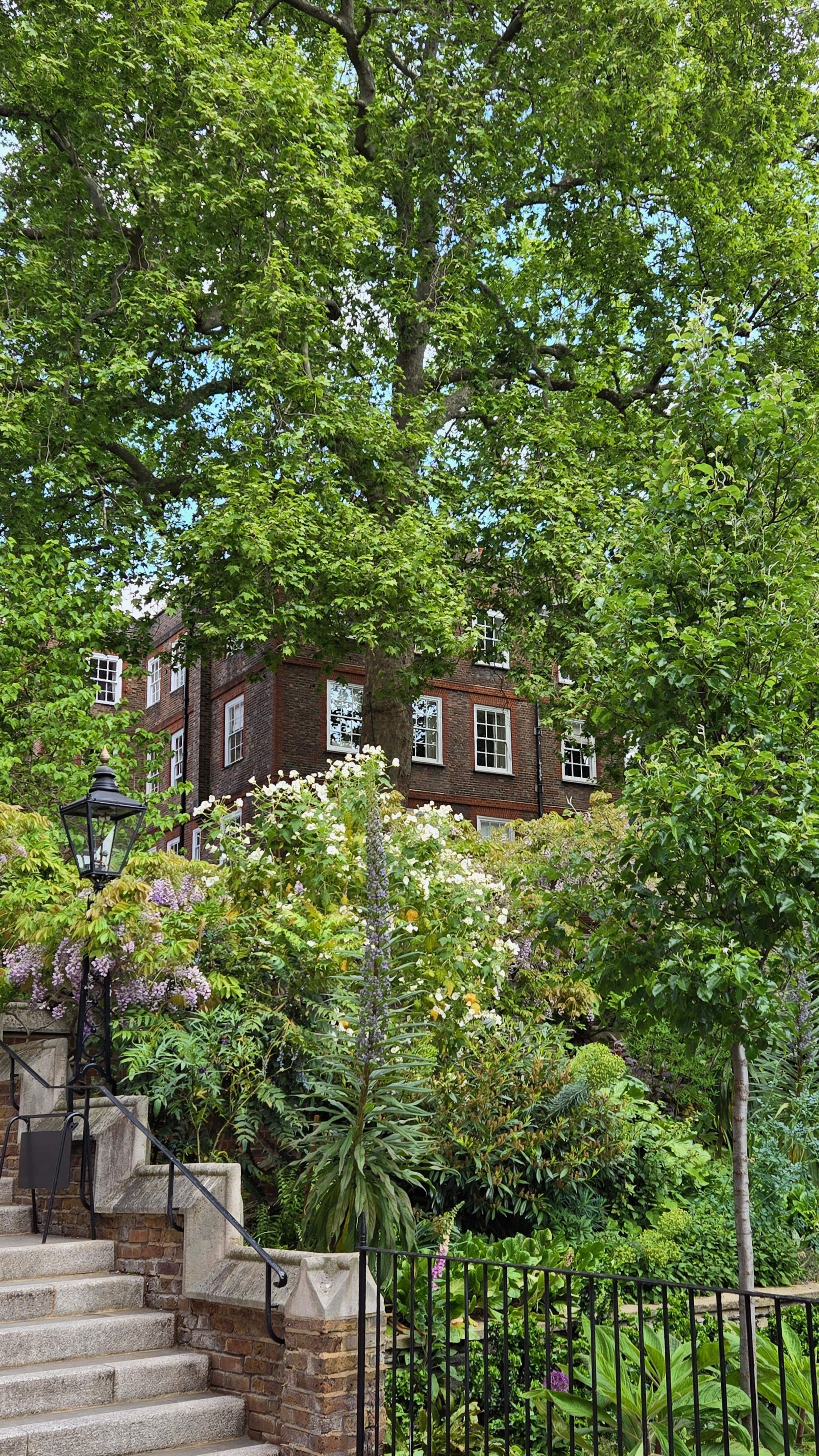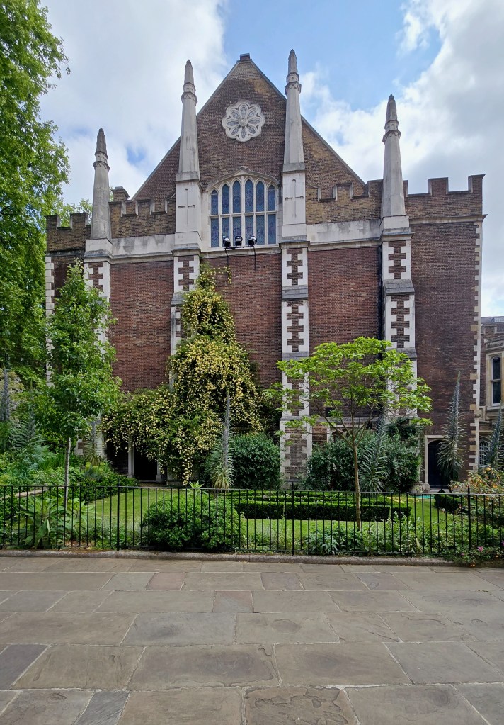 However, Master Kate Jenrick is also in charge of the garden that nearly took my breath away. I was coming down the steps onto the Garden court of the Middle Temple Garden and stopped in my tracks. Wisteria dripping off the balustrades and banksea roses climbing the brick walls of Middle Court. A man, the only other soul there saw my admiration and said, “Stunning isn’t it?”