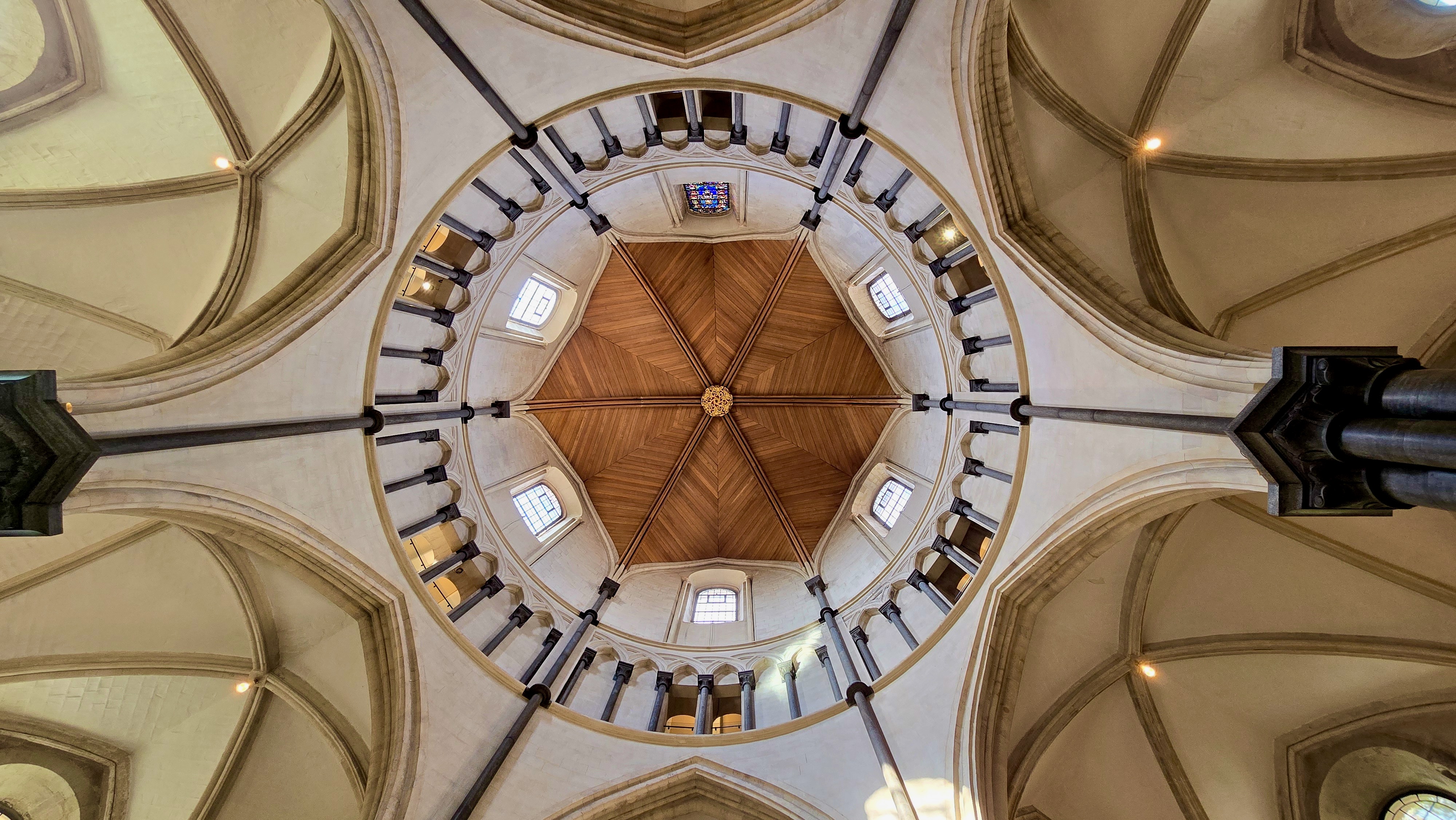 By the time I made it back to the Temple Church it was open and there were maybe a dozen people exploring it. Please google the church to find out more. This particular photo I took by laying on my back in the middle of the rotunda and shooting straight up [or the best that I could].
