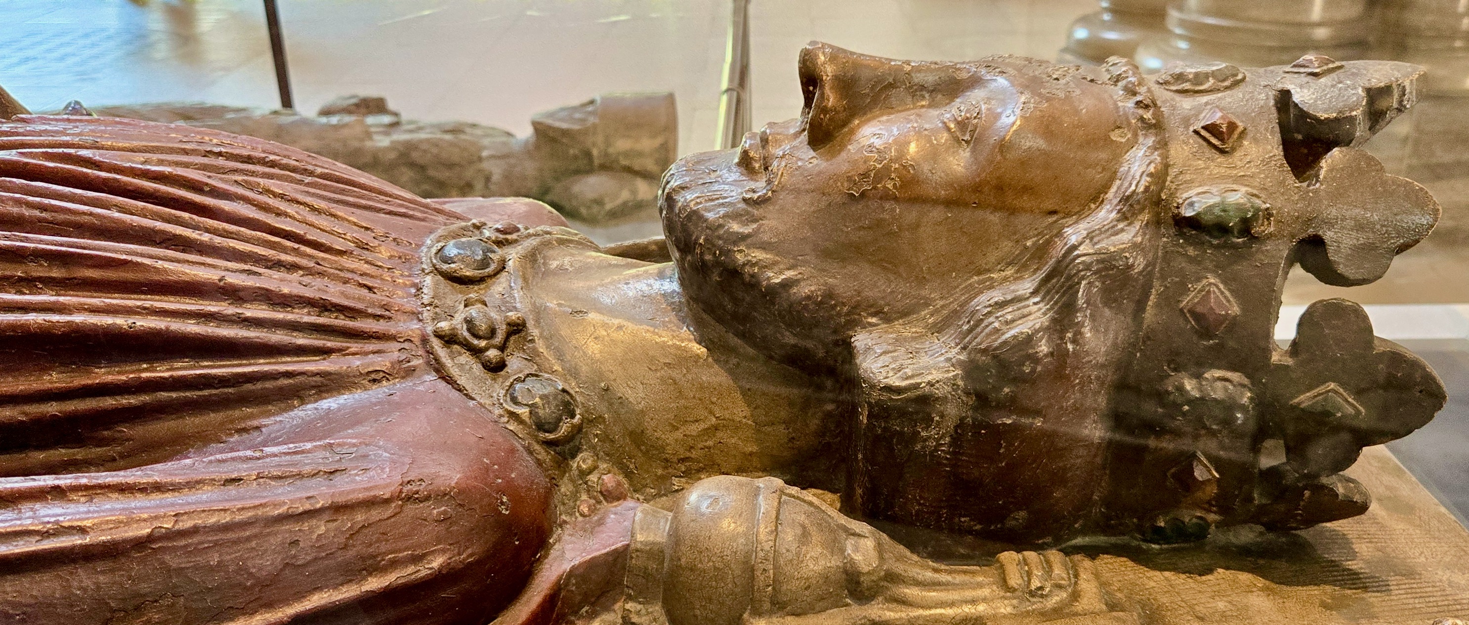 There were several Americans here as I was visiting and I suspect it is a draw, particularly now as our United States Bill of Rights are under attack. Our Bill of rights takes some of its ideas from the Magna Carta which came to fruition in 1215 under the Reign of King John. A copy of his effigy is on loan here from the Victoria & Albert Museum. [Original is in Worcester Cathedral].
