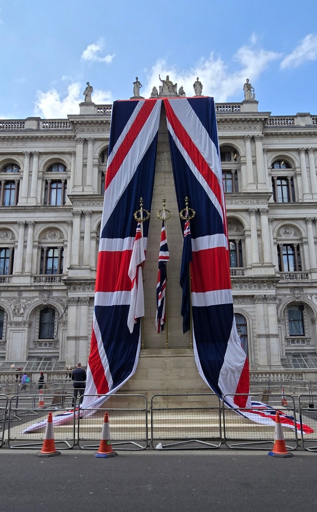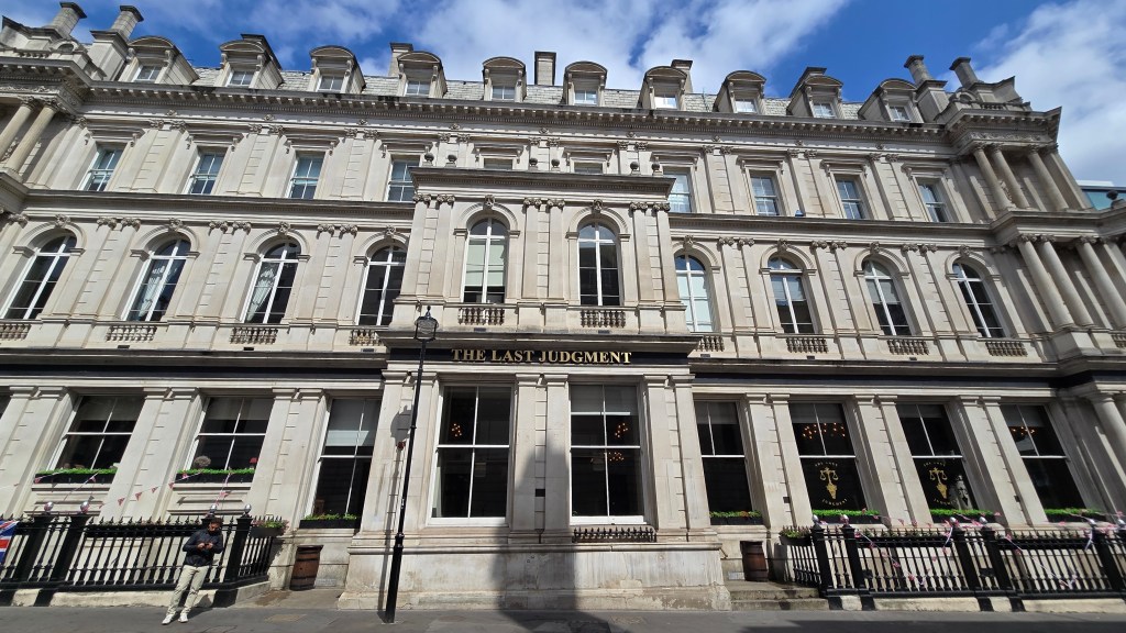 And then a couple of things happened. I knew that today, May 8th, was the 80th Anniversary of VE Day or Victory in Europe, commemorating the end of WWII for Europe. Celebrations were everywhere. These presented themselves. And note the building called “The Last Judgement.” So in an impulsive decision I decided to head over to Westminster. I had been to Trafalgar Square during the BREXIT Vote….how busy could it be?