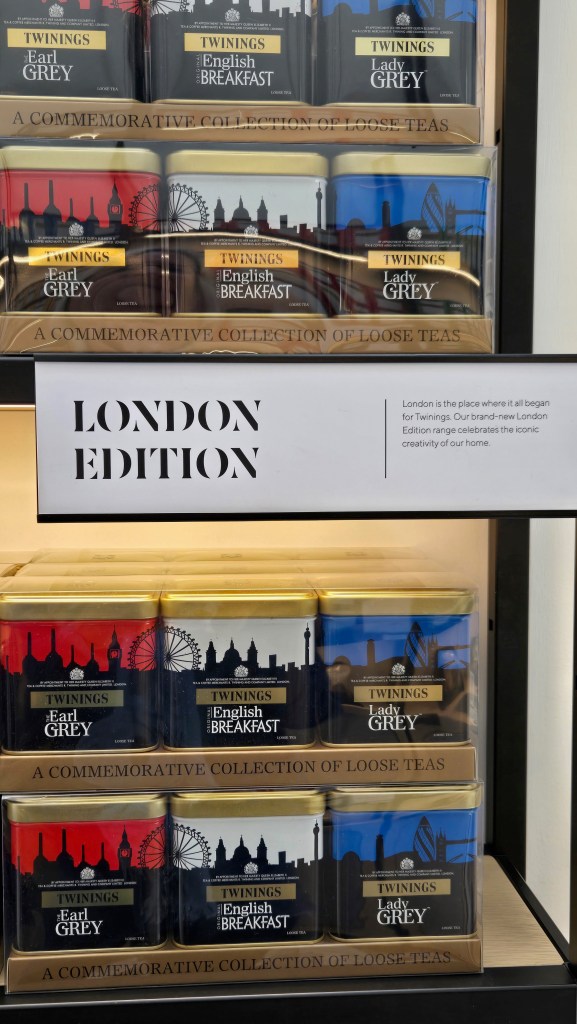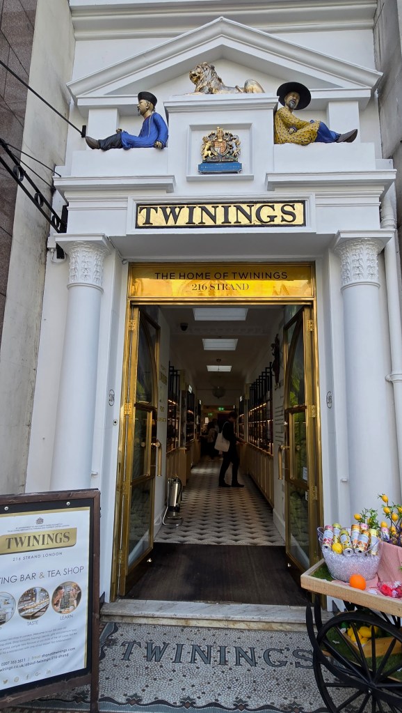 I had my lunch on the porch of Temple church before making my way back up to the Strand. Where I just happened upon a Twinging store and was able to fulfill a request from my friend, Denise’s daughter. Although I had thought we could get the same Earl Grey in the United States I was informed that this particular blend of Earl Grey was only found in London.