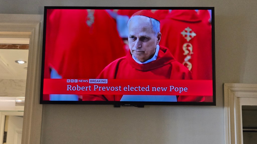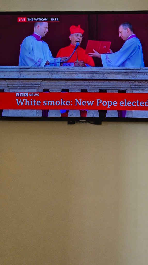 As world leaders go, I admired Pope Francis for being a champion for the poor and an outspoken advocate for human rights. He died the day after Easter, Monday, April 21, 2025. The conclave to elect a new pope began yesterday, May 7th, in Rome. Here it was the next day, and I turned on the tele to find out we had a new pope.