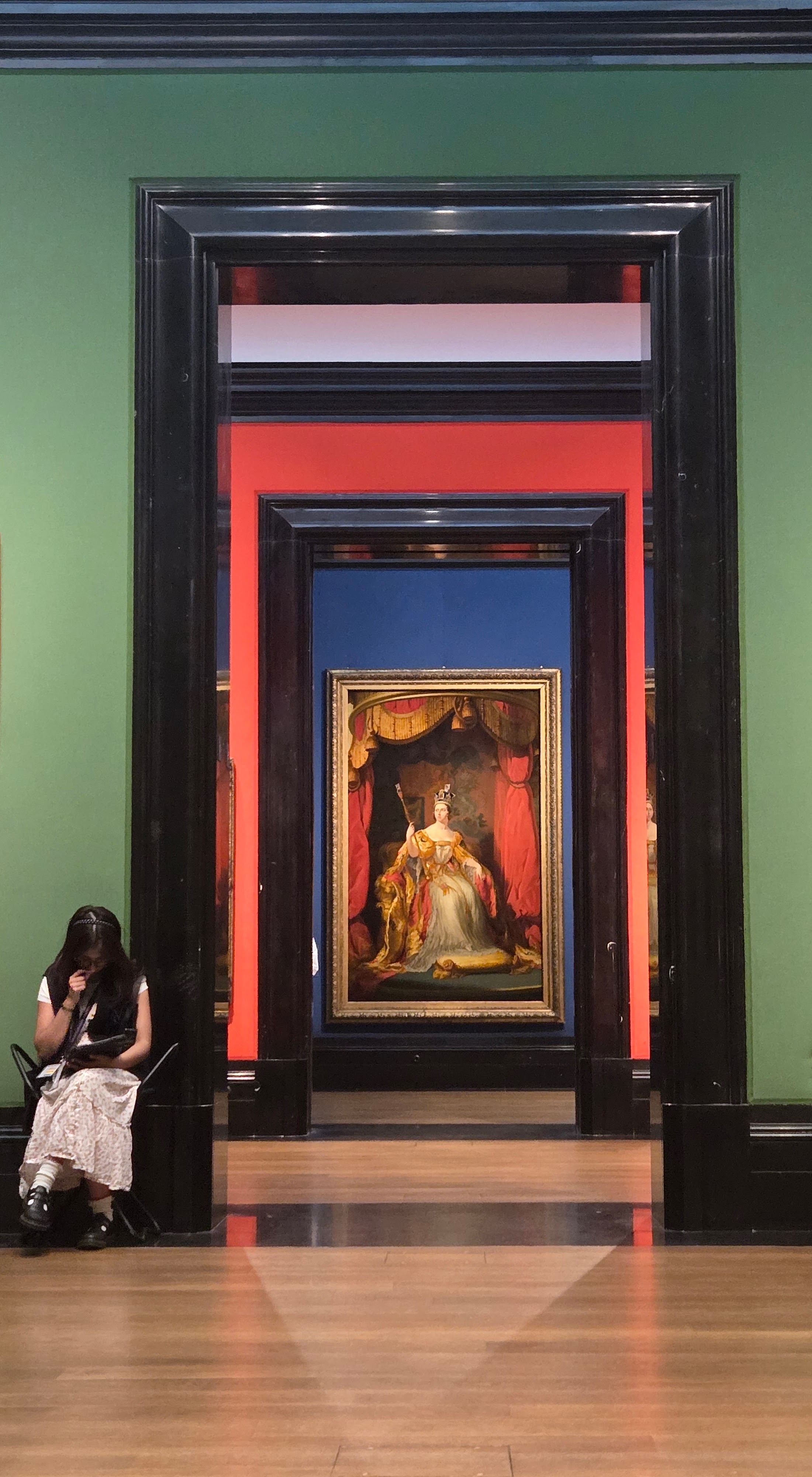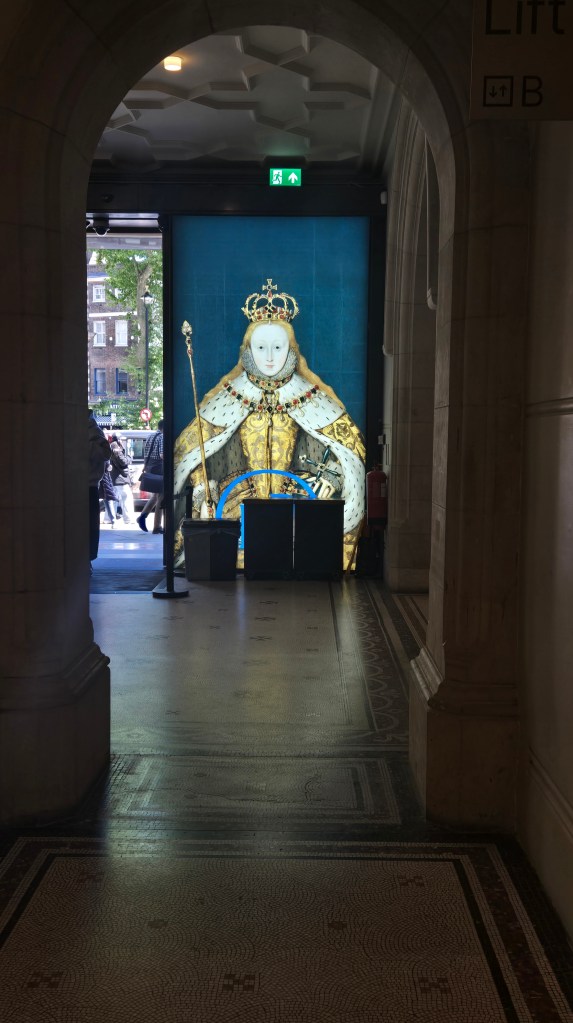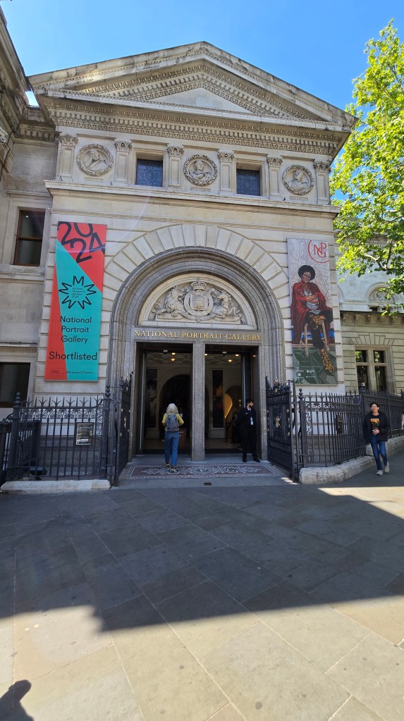 Grabbed one of my meal deals and found a seat outside the National Portrait Gallery. I sat for a leisurely lunch while watching the world go by. I noted the Theatre across the Street and it was familiar. I texted Dale, and asked isn’t this the Garrick where we saw “Noises Off”? Hard to believe in a blink of an eye I could text Dale and get a response, “Yes.” I finished my lunch and entered the National Portrait Gallery. Unlike the British Museum, The Victoria & Albert, The National Gallery and the National Gallery are all FREE, although donations are welcome. I am particularly a fan of the Tudor Rooms with their life size portraits, rich in colors and detail. The lighting is dark to protect the paintings and it adds to the intimacy. I spent some time here.