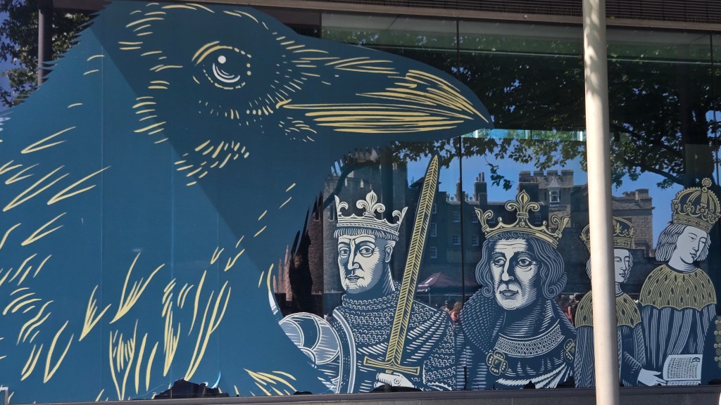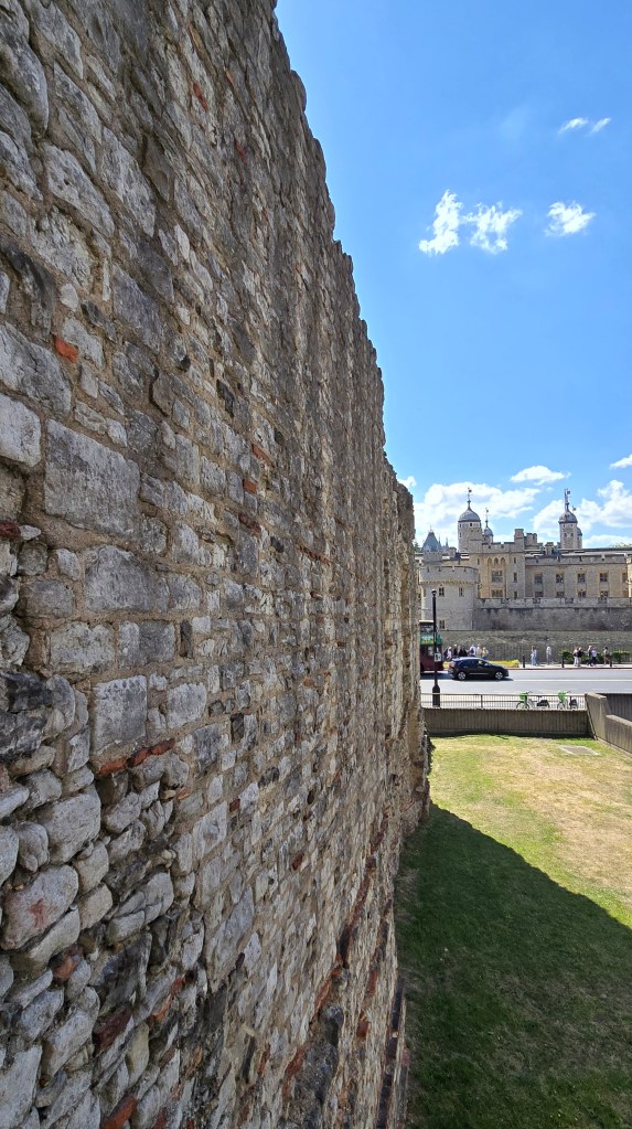 I arrived at Tower Hill Station, to yet another sunny, blue sky masterpiece. I had walked my way from the station to the hotel via Google Street view in advance of my trip. I had done this with many places so I would recognize them, and know where I was. In this case the hotel was steps from the train station however the entrance to the underground was around the corner. Some photos of the Roman Wall and Tower of London. As a side note Denise’s ancestor Robert CUSHMAN stayed very close to here.