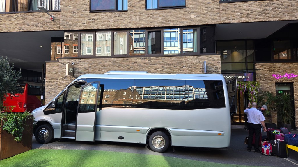 When we were planning a trip to England, Denise’s first desire, was to go to Canterbury and I had always wanted to see Sissinghurst Gardens. Before Covid-19 there was a 3 day tour out of London that did just that but when I was looking last year it was no longer available. So after lots of searching we settled on Blue Roads/Back Roads Touring (Blue Roads in US) because it hit them both as well as many other places we wanted to see and their tours are limited to 18. (I have a preference for smaller groups.) After a delicious breakfast we all met outside by 9. Everyone on time and loaded up ahead of schedule.