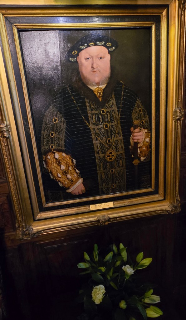 As impressive is the Castle, it is a relatively small moated castle. The rooms have a more intimate quality than a royal castle. Henry VIII is believed to have visited Hever Castle during his courtship of Anne Boleyn, but whether he ever stayed here is debated. The castle has 4 portraits of Henry on display and a lock said to have belonged to Henry VIII. One of the portraits and the lock below.