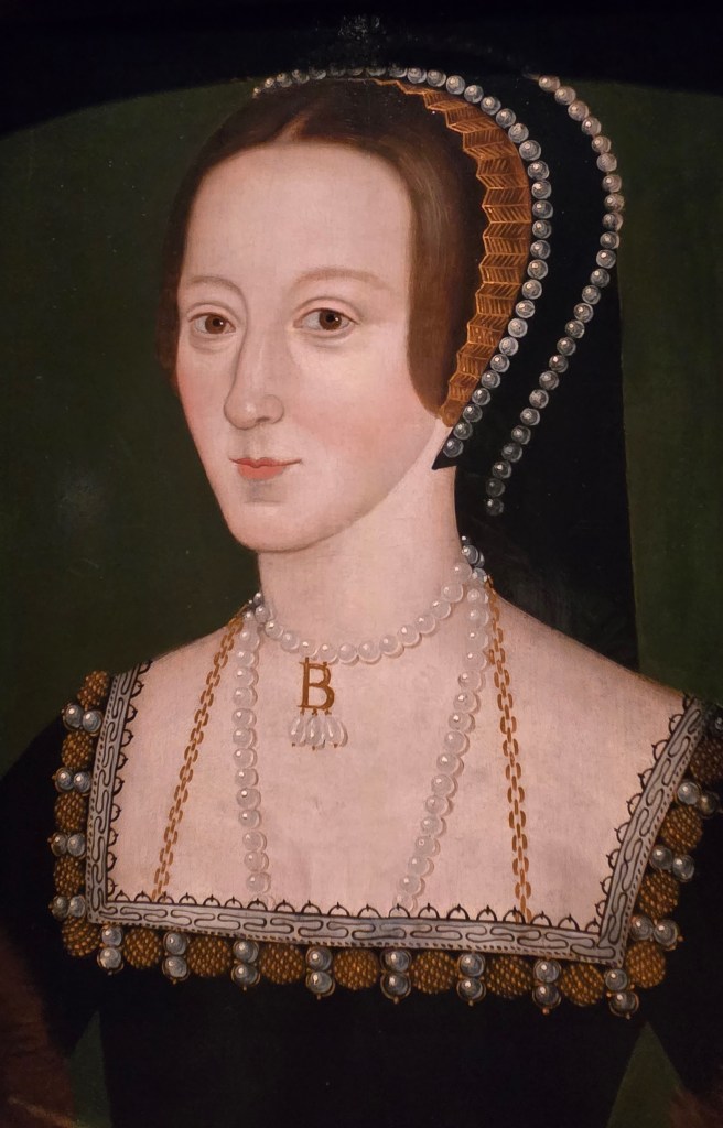 King Henry VIII casts a long shadow. His first wife, Catherine of Aragon, failed to bear him a son so he divorced her as well as separating from the Church of Rome. He established the Church of England with himself at its head. In 1534, the Church of England renounced the authority of the Papacy and began the English Reformation. This involved the dissolution of all Catholic monasteries, friaries, priories, and convents ; the seizing of the church’s wealth; the disposal of their assets; the destruction of many buildings and relics; and the dispersal or destruction of their libraries. This is the backdrop for the divorce and marriage of Anne BOLEYN>