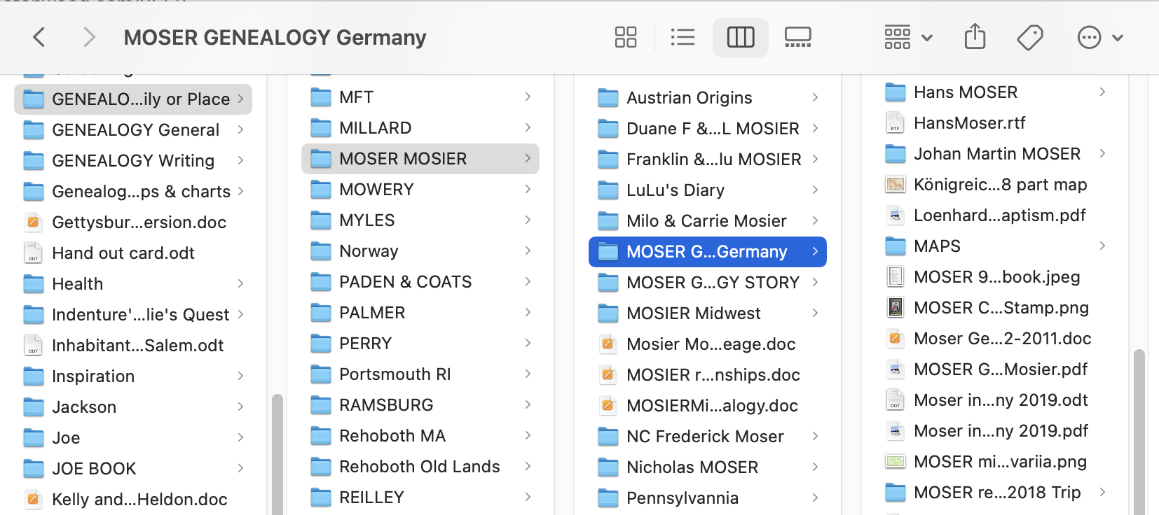 I wrote in an earlier post on this topic but realized in preparing for a Genealogy class on Organizing I needed to give more specifics. How I do it may not work for you. You must develop I system where you can intuit where you filed something without thinking. Not what someone else decides is the way you SHOULD do it. After 50 years I do have very strong biases. While it sounds great to put birth certificates in a folder and deaths certificates in a folder when you are starting out, ultimately this isn’t very helpful overall. [Unless you have a very specific reason for doing so. [I have a death binder that includes all my ancestors back to second great grandparents for the purposes of analyzing how old they were at death and what they died from. But this is also duplicated elsewhere.] So in General file everything about a Surname in one digital folder, binder or folder. If you need to , you can break this into multiple sub-files or folders or binders but still under the Surname heading. Whatever you do for digital files use a similar organizing structure everywhere. KISS (Keep It Simple Stupid). I keep people with their families until they marry. This means if I am writing a narrative about them I will have to go to their parents family first.