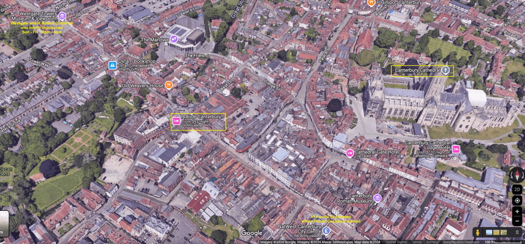 As I have recounted this trip was partly to allow my friend Denise to visit Canterbury where her direct ancestor Robert CUSHMAN lived and was instrumental in organizing the sailing of the Mayflower. As luck had it Denise was not able to go, but I was able to wander around Canterbury the evening we arrived and the next morning and find all of the places I had mapped out in advance related to Robert CUSHMAN.