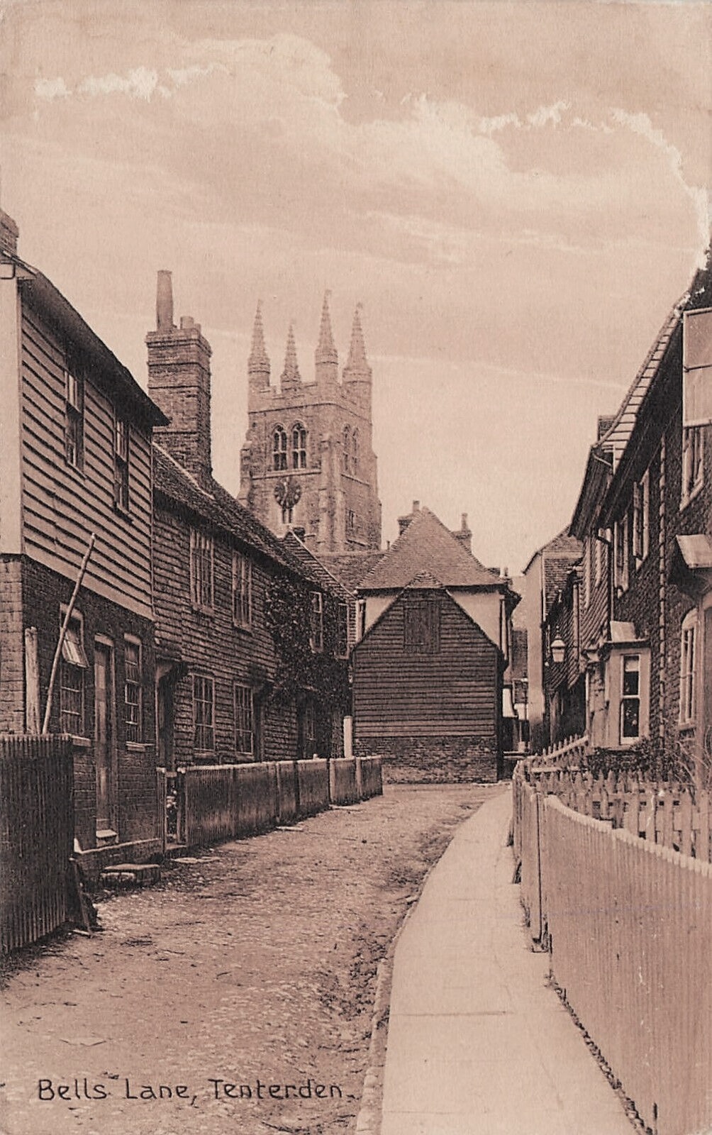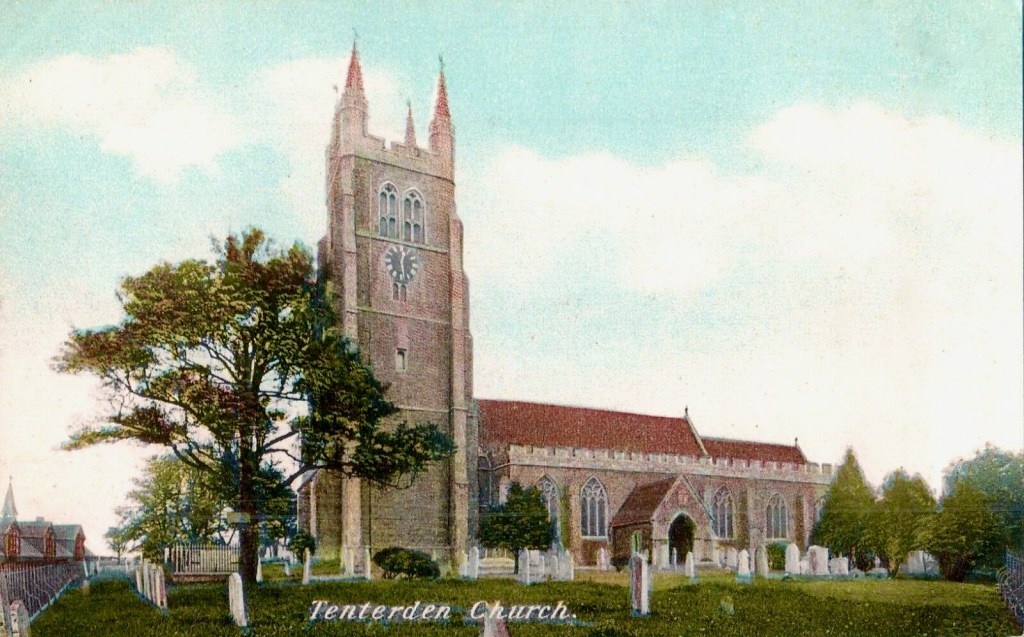 We made our way to the town of Tenterden and the spire of St Mildred’s Church could be seen from quite a distance, as seen in this old postcard looking north from Six Fields Lane.