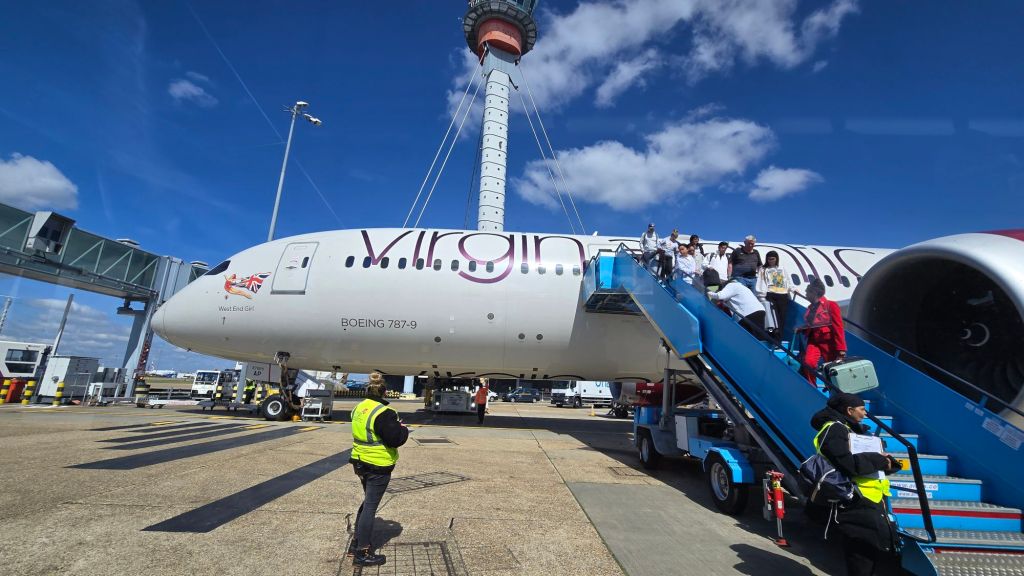 Boarding was quick and well organized with Virgin using two doors to admit passengers (Priority and normal). Didn’t need to check ticket or passport as they check you in via biometrics. The UK began with that many years ago. The plane was fairly full in First Class and Business Class. We had paid $37 extra for priority seats: one window and one aisle. So as it worked out I had the whole row to sleep on!