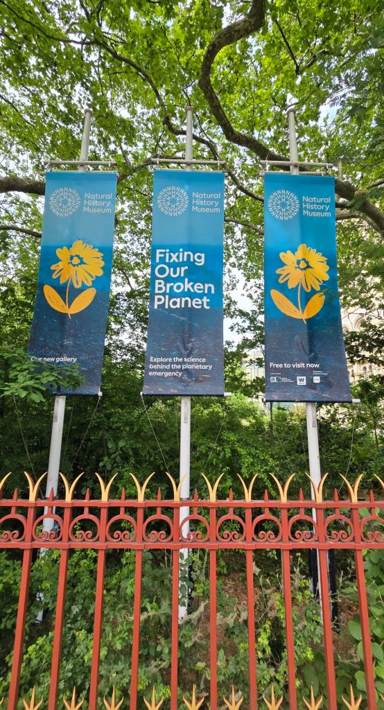 Off on foot to the Victoria & Albert Museum. By the time I got to The Natural History Museum I could feel the day’s travel hitting me. Rather than pop in I just strode right by. However I did love the title of this exhibit.