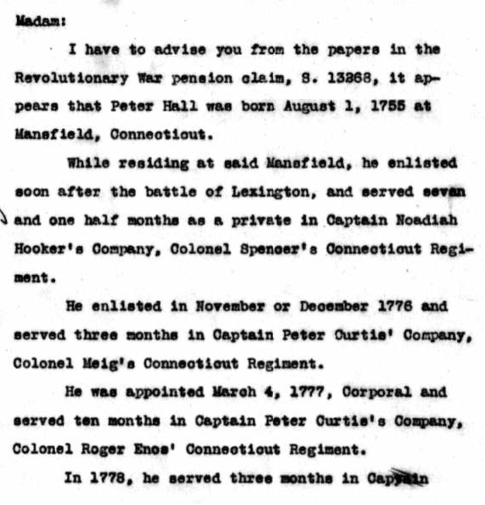Revolutionary War Details in Ancestor’s Pension Files: Peter P Hall
