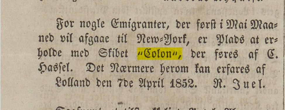 - Use newspapers to search for arrivals. Note the one I found has misspelled the port of embarkation AND the name of the Ship and the captain’s name which was Hassel