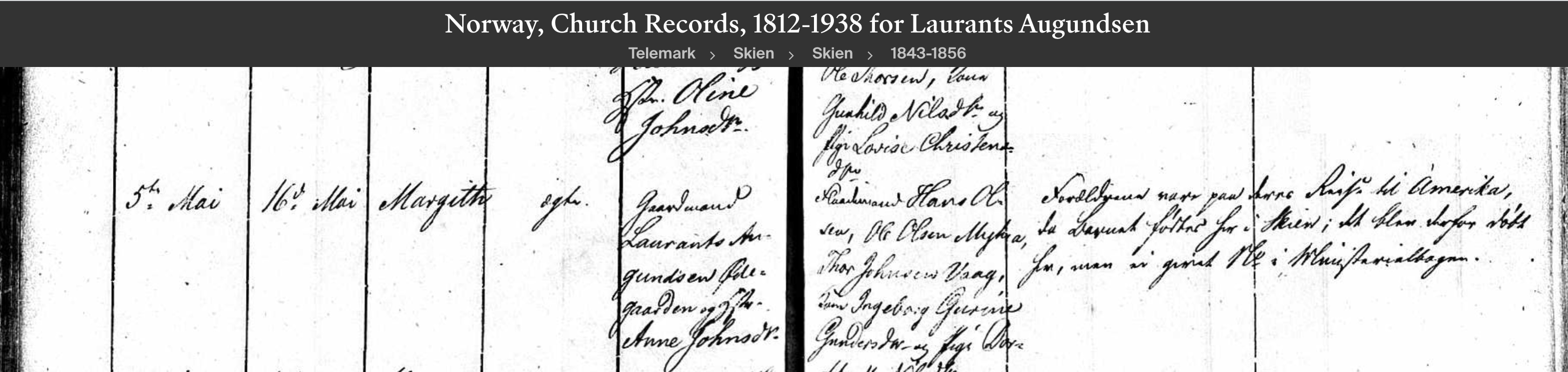 The numbers drop of again in 1853 and 1854. So 1852 was the height of the early immigration out of Vinje for Amerika. I always wondered about whether she came alone to America. It is of some comfort that she was not alone on at least the first parts of her journey.
